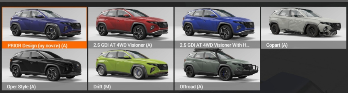 Hyundai Tucson L 2021! Description: The mod is adapted to the Openable Mod (you need to download it from the Bimki forum) There is a PRB salon, There is a bottom, a hood, a space under the bumpers, etc. There is a projection (H.U.D) on the windshield There is a choice of different interior colors, a working electronic speedometer, a clock and a navigator of various configurations (below in the screenshot) The car has average damage Defects: ETK1300 skeleton (suitable in size) The openable mod does not work well for the trunk ------------------------------------------------------- the projection is put through glass; you can inflate the suspension of the offroad in English. the letter O in the oper style can be changed the modes of operation of stroboscopes Credits: kws | beamNG province |