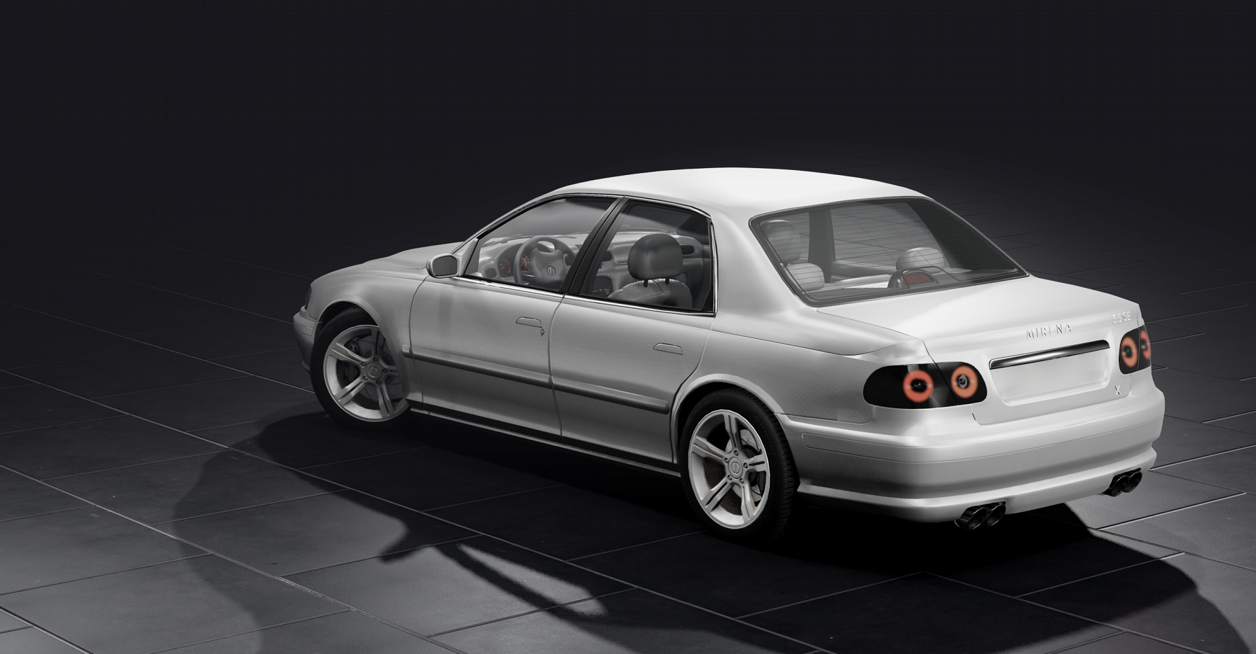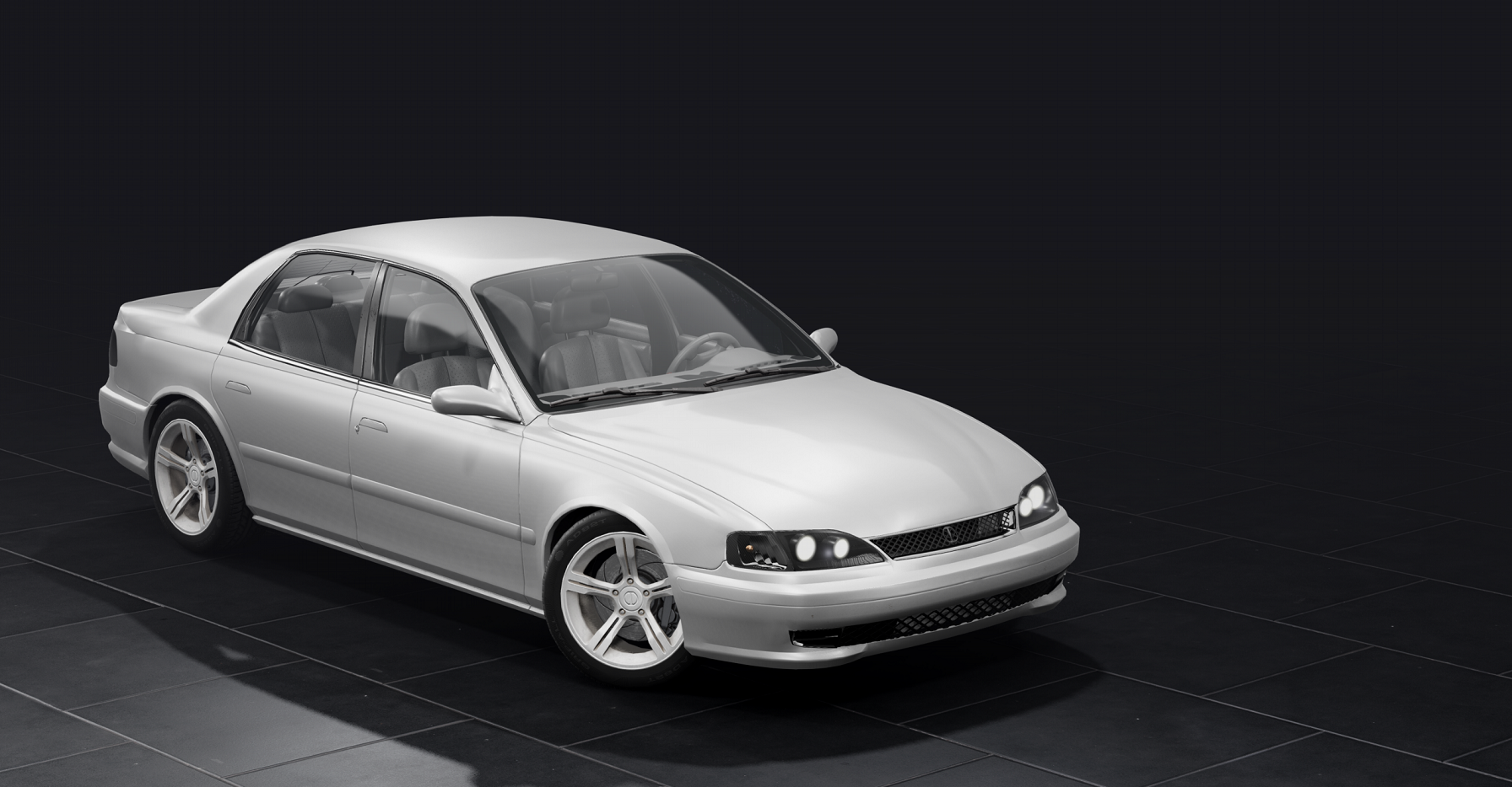 Inspiration: Nissan Maxima (based on the Pessima, the equivalent of the Nissan Altima in BeamNG), Infiniti G and M for the longitudinal arrangement of the engine.