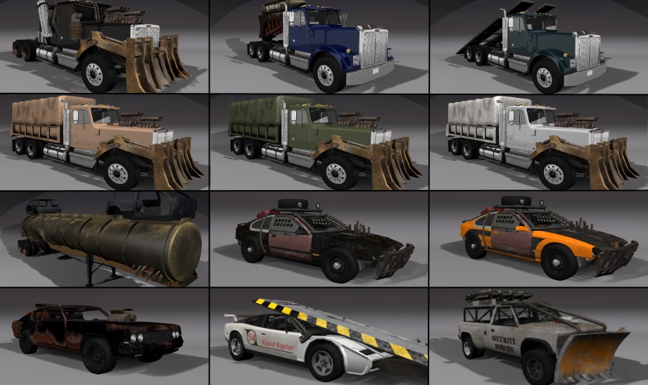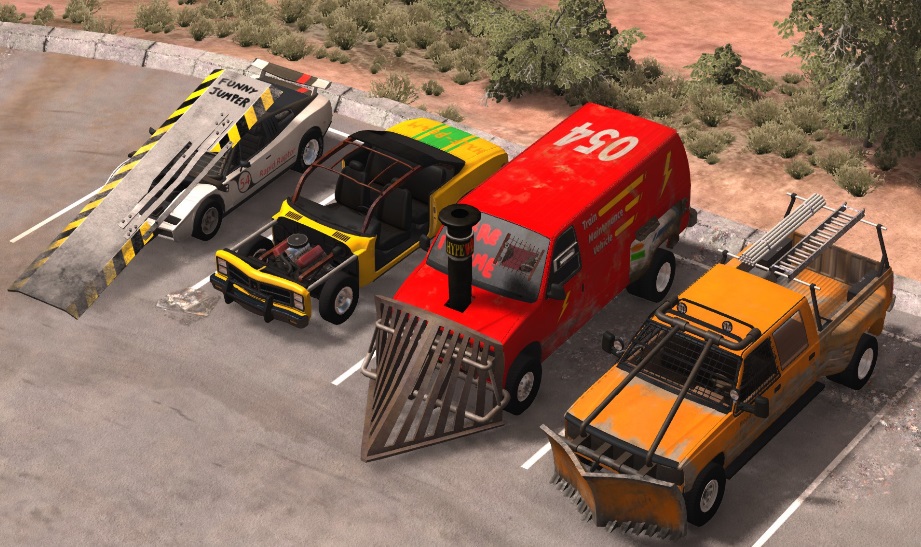 Javielucho's Mad Mod Welcome to my mad mod. This mod include custom parts, skins and “funny configurations”. The style is based on a post-apocalyptic world, such as Mad Max or even other films and games... but the key is the creativity! V 0.3 · Added pickups: "The Avalanche", recon and asault pickup configs V 0.2.6 Preview trailer (V 0.2.6) made by @jorgegf74 Added mad trucks: · "The Sniper Truck" · "The Ramp Truck" · "The Mad Rig" (truck and tanker trailer) V 0.2.5 Compatibility with 0.8.0! New texture style. Finished the Van. Added the Mad Coupe: "200 Nights". V 0.2.4 Added the Mad Roamer: "Dustorm". V 0.2.1 Added "The Barstowceptor" V 0.1 The first release has a mad van, a mad covet. I would like to create more custom parts (as the mad covet), cars with cannons and much more! Instructions: