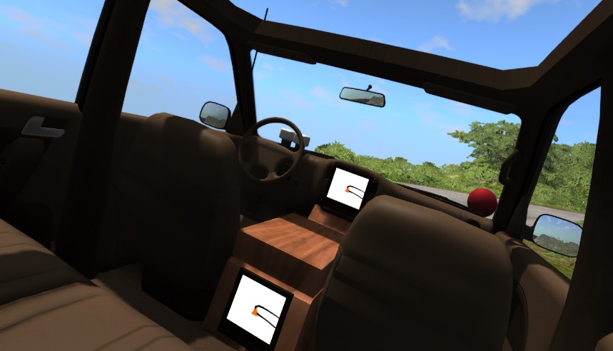 Custom interior with headrest-free seats, modified dash with new central console front to rear with 2 nav screens for all passengers. Modified dash with climate controls moved to the bottom, no radio, custom central air vents, and no dials/gauges.