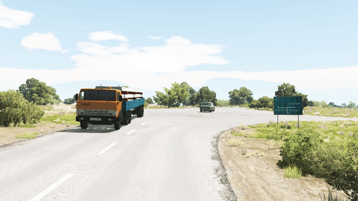 Mod KAMAZ 5410 / 5511 V1.5 for BeamNG.drive What's new: Fixed the 1-person view. Engine sounds have been changed (now they are KAMAZ), the starter sound has been added. Added some new tuning. A cabin with a sleeping compartment has been added. Trailers have been added as an addition to the mod, a tank and a flatbed trailer (the tank explodes). Credits: Bagusik |