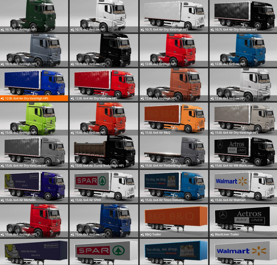 17. Includes the 6x4 option with a solid body (truck).