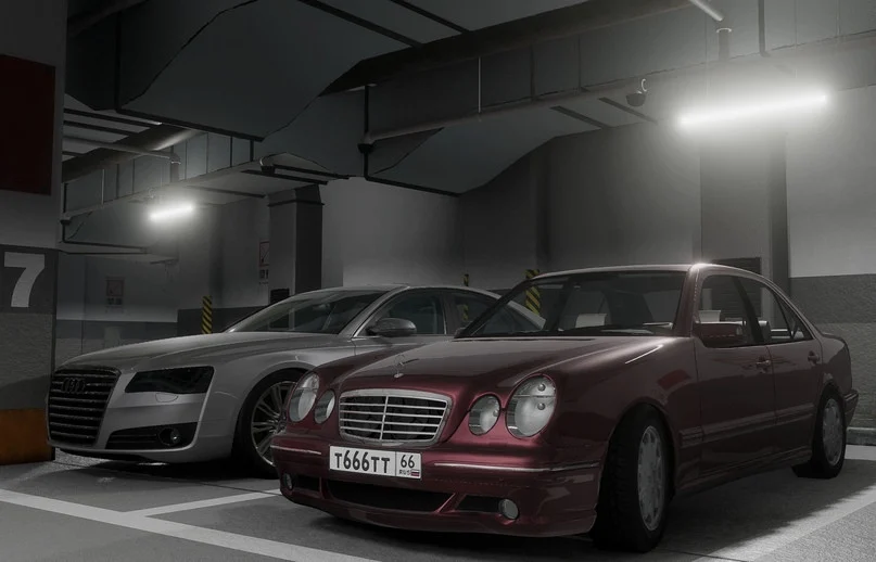 : In the cabin there are animated gas and brake pedals, an animated handbrake pedal, an animated ignition key, an animated H-Shifter, an animated turn signal lever, an animated dashboard (Speedometer needle, tachometer needle, thermistor needle (engine temperature), fuel gauge needle (fuel in tank), working sensors (BRAKE, ESC, CHECK ENGINE, tire pressure and headlights on), working hours on the dashboard), navigator animation, button illumination.