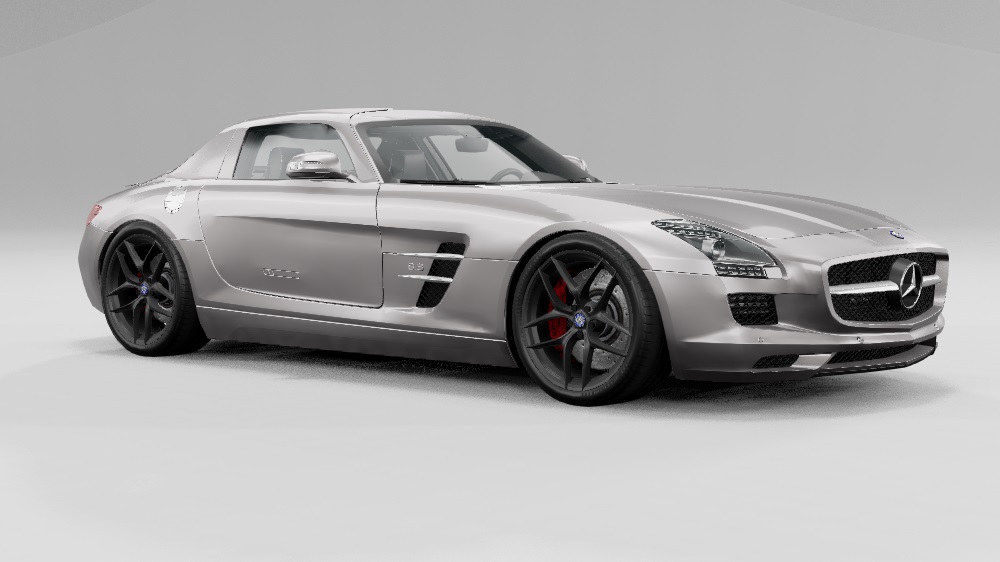 Mercedes-Benz SLS sports car for BeamNG. – Seven configurations; – A good model; – Nice interior; – Your own sounds; – Several wheel options; – Body kit.