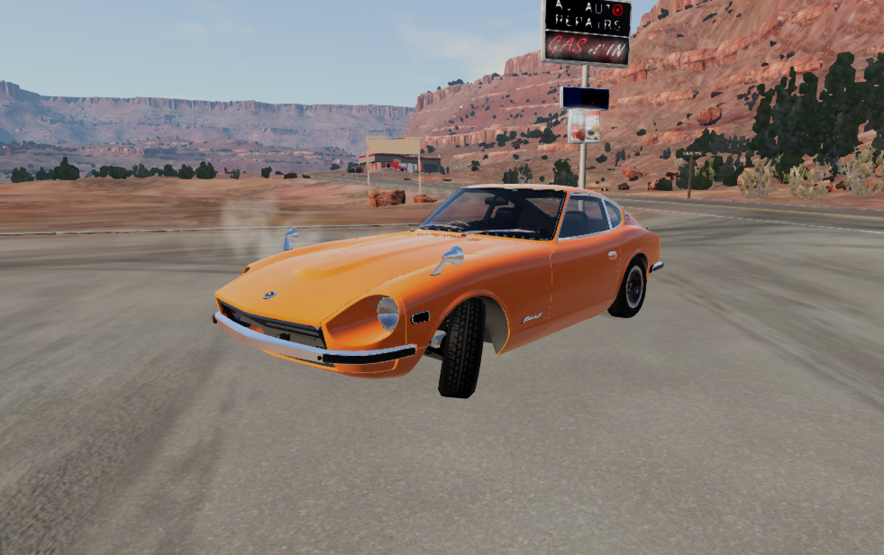 Mod car Nissan 240z for BeamNG.drive Fixed bugs with tires when choosing any configuration, there are tires and added a steering wheel and a radiator for the Body configuration. Credits: mmbng |