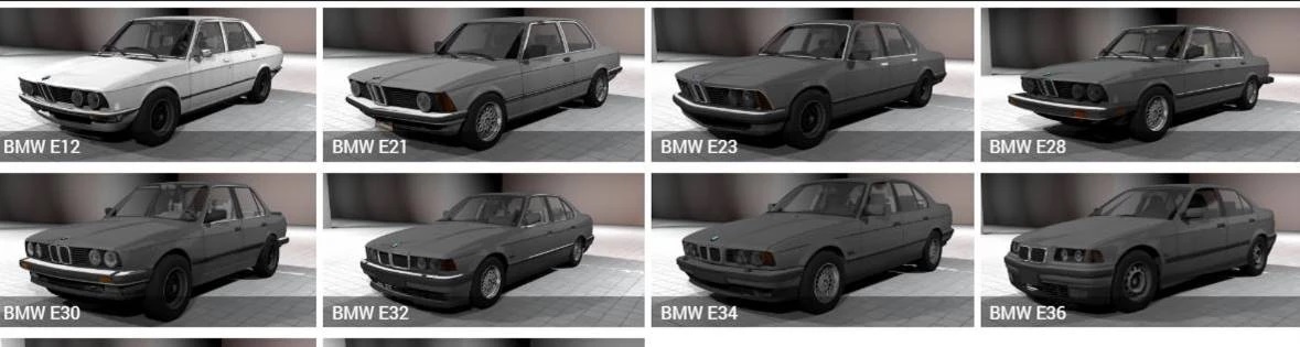 Mod OLD BMW PACK V1.0 for BeamNG.drive A pack of old BMW cars. Includes: E12, E21, E23, E28, E30, E32, E34, E36, E38, E39. Also includes wheels from Forza Horizon. Credits: Smouk2 |
