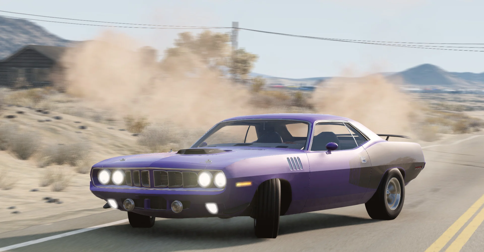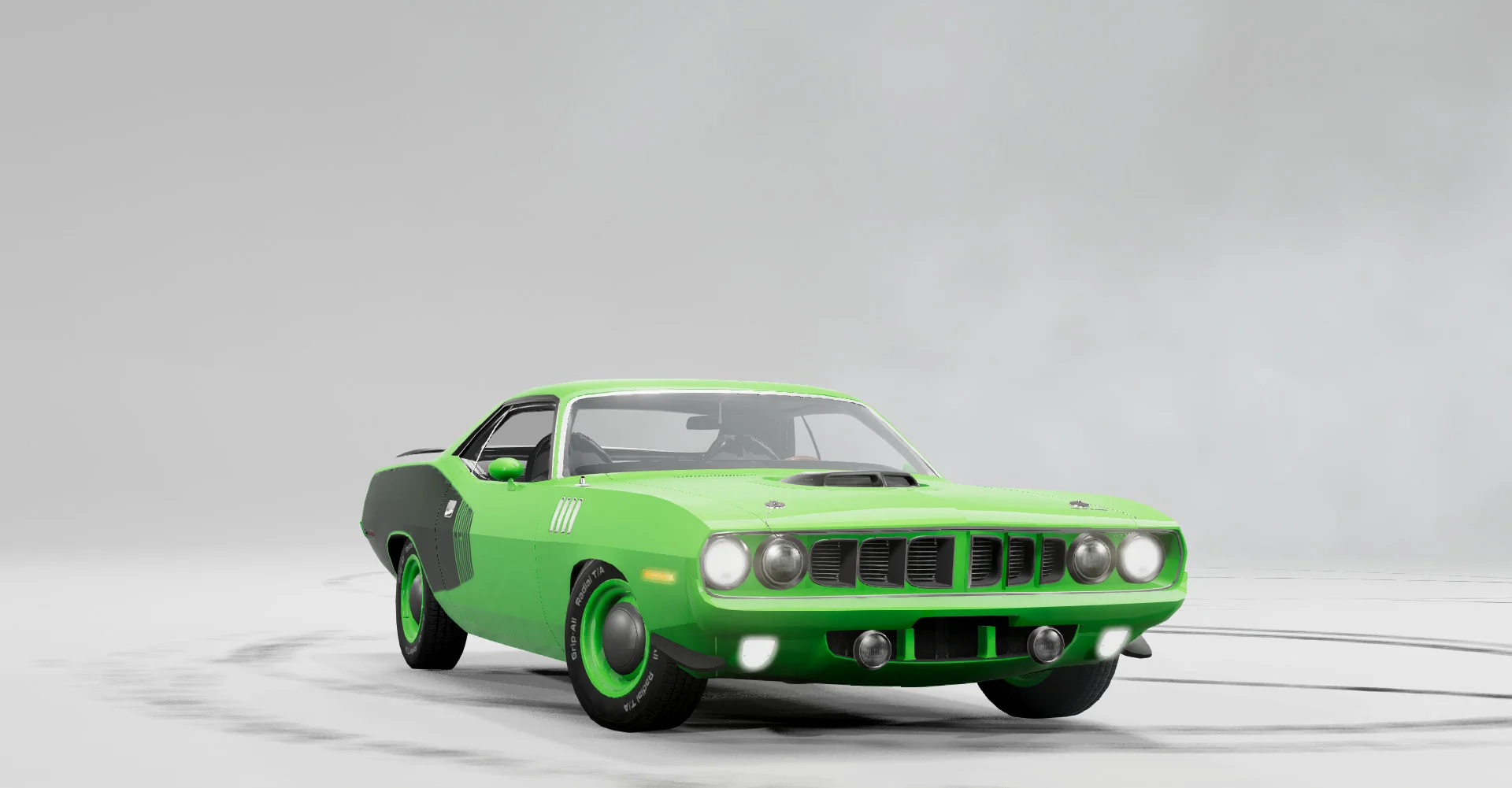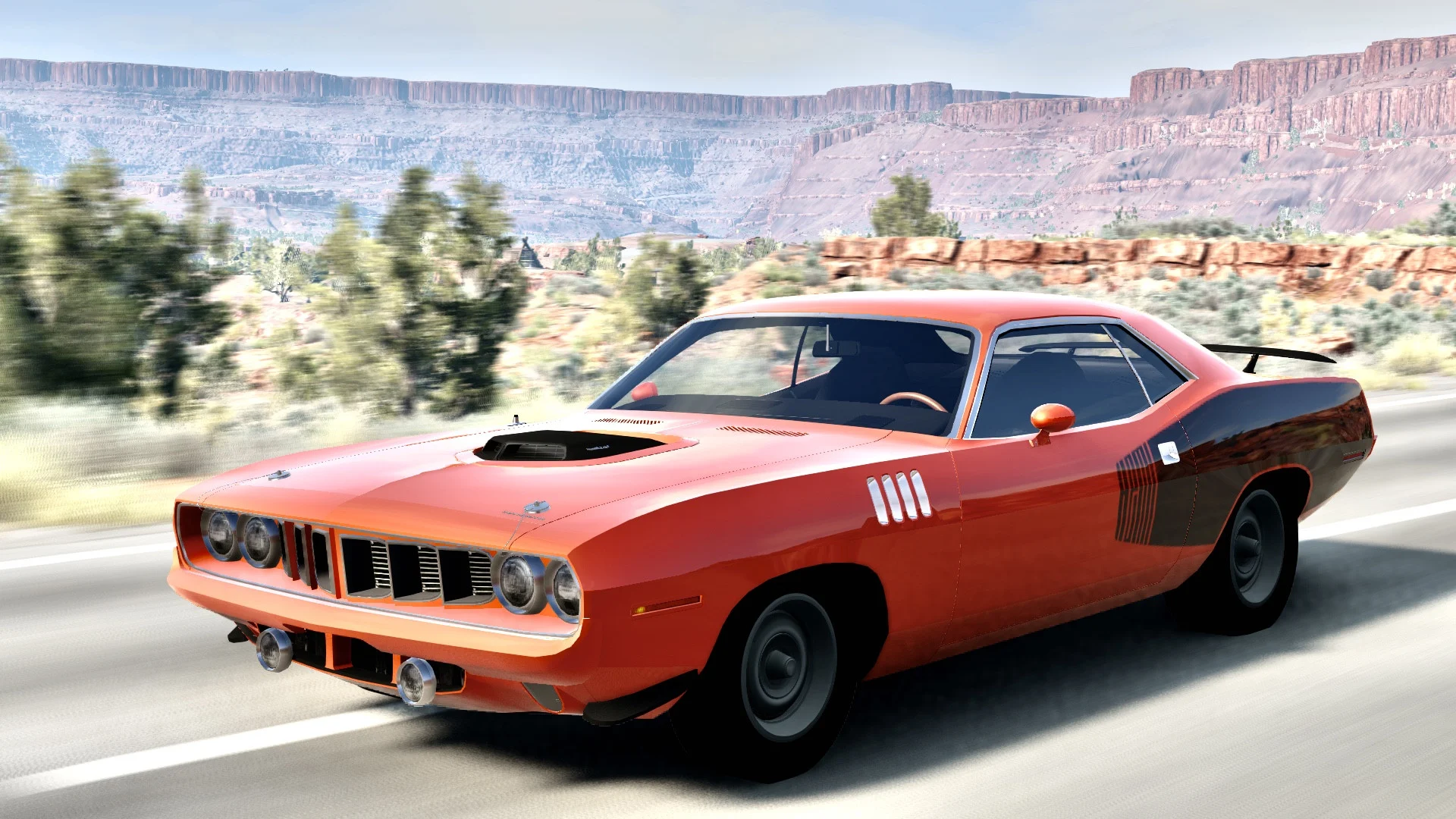 The legendary Plymouth Barracuda car with a huge history. This is a 71-year-old Cuda equipped with three v8 engines: 383 V8, 440 Magnum V8 and the legendary 426 Hemi engine. The latter has a power of 425 hp, which made this oil car one of the fastest oil cars of the 70s. - 13 configurations; Credits: BeamNG |