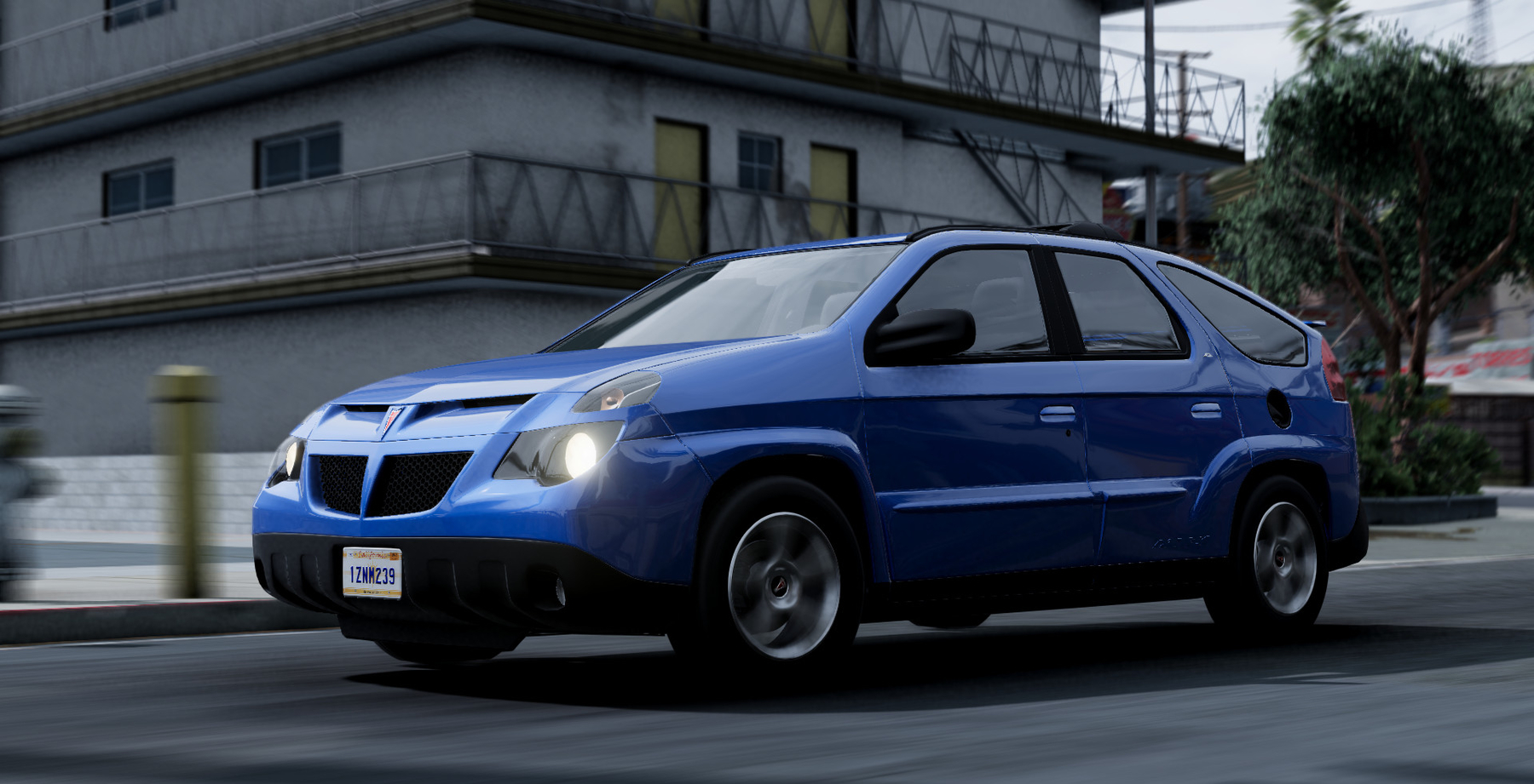 The Pontiac Aztek is a crossover SUV with a 3.4-liter LA1 V6 engine. He is known for his ugliness due to his unique style and shape.