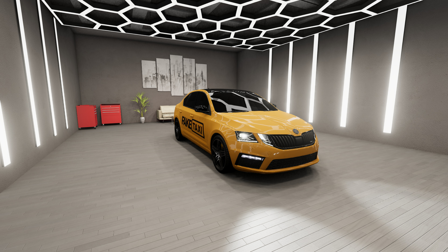 - Animated elements: dashboard, pedals, gear lever, mirrors.