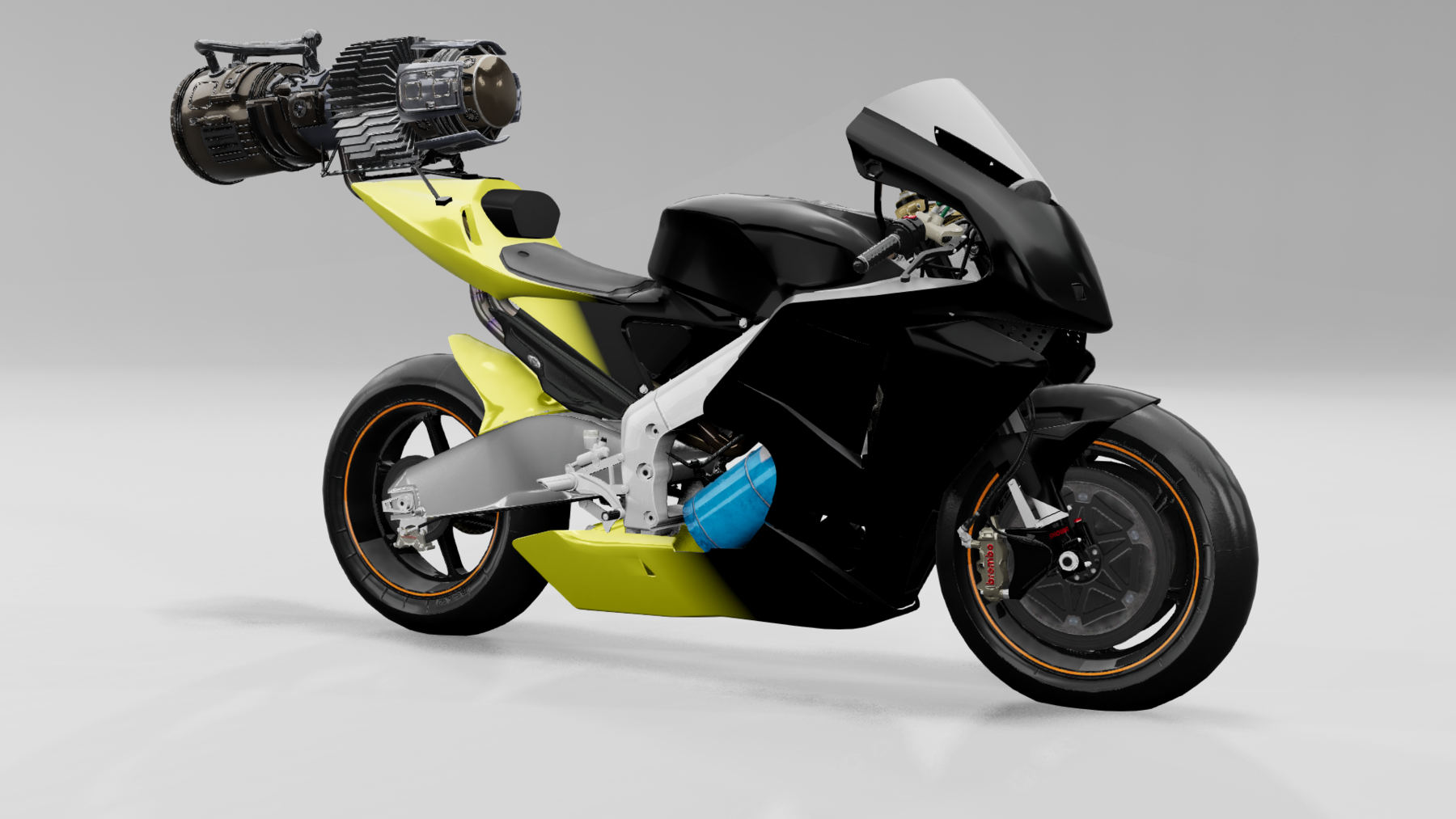 – SuperGP: Two variants: the first with a regular 1200 cc racing engine. cm, presented in three different colors (Colorful, Team Black, Team Red), and the second with a jet engine!! It can accelerate up to 700 km/h, but don't expect it to stand on the ground.