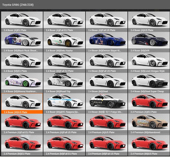 MOD TOYOTA GR86 for BEAMNG.DRIVE My first mod with its own uv skin for BeamNG.Drive Pros: Skins, Skin template (located on gr86.zip\vehicles\gr86\Skins), 28 Configurations, Detailed working lights, Working sensors, Working navigation, Sensors and navigation are disabled when the engine is turned off, Own wheels, PBR paint, PBR texture Cons: sensors, interior and interior of the trunk are not detailed, the Hirochi SBR engine model is used. Credits: V0LG4BNGmods |