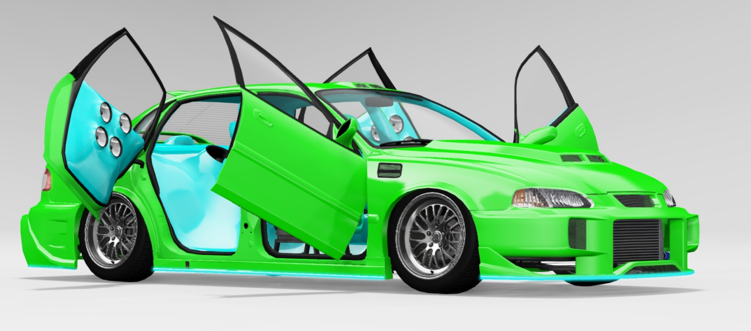 MOD TUNNING 2000S FOR BEAMNG.DRIVE Some notable features: Oversized body kit More speakers than you'll ever need Glossy plastic everywhere Butterfly doors LEDs More glossy plastic 2 Configs Universal color seats Double Exhaust Door control: Rear right - G Rear left - F Front right - Y Front Left - T (If they don't work, change controls / bindings)