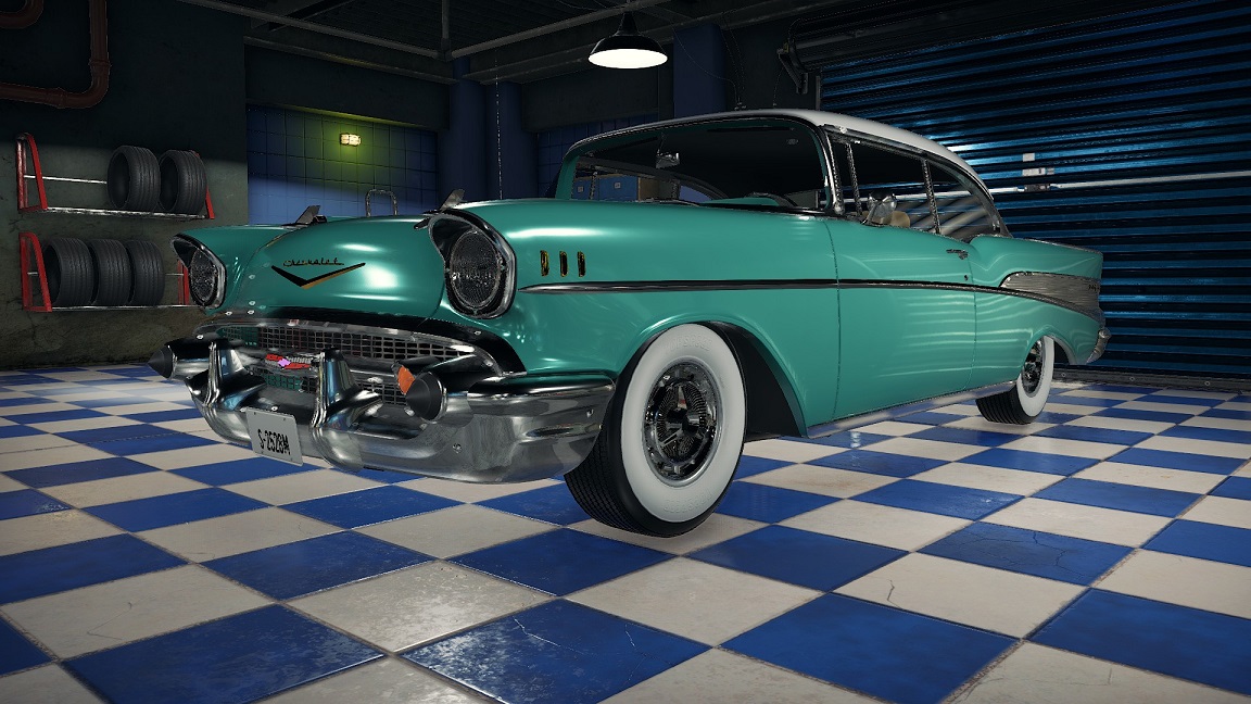 1957 Chevrolet one of my favorite chevys alot time went into making various engine covers we have done our best to cover up in game engines the best we could without the loss of to much HP just sick of looking at the same V8 engines