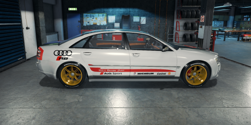 Audi A8 Sport Twin Turbo = Mayen M8. Livery= Audi Sport suspension= Bentley continental gt rim=rim_zonda_B tire=tire_race_2 Seat & bench=seat_500e Engine= v8 twin turbo exhaust=v8 *change configuration: [1_other] allowedPlaces=Order.1,Shed,Auction,Salon for [1_other] allowedPlaces=Order.1,Shed,Auction,Salon,Junkyard so that the car goes out everywhere. Credits: Game Over Charly |