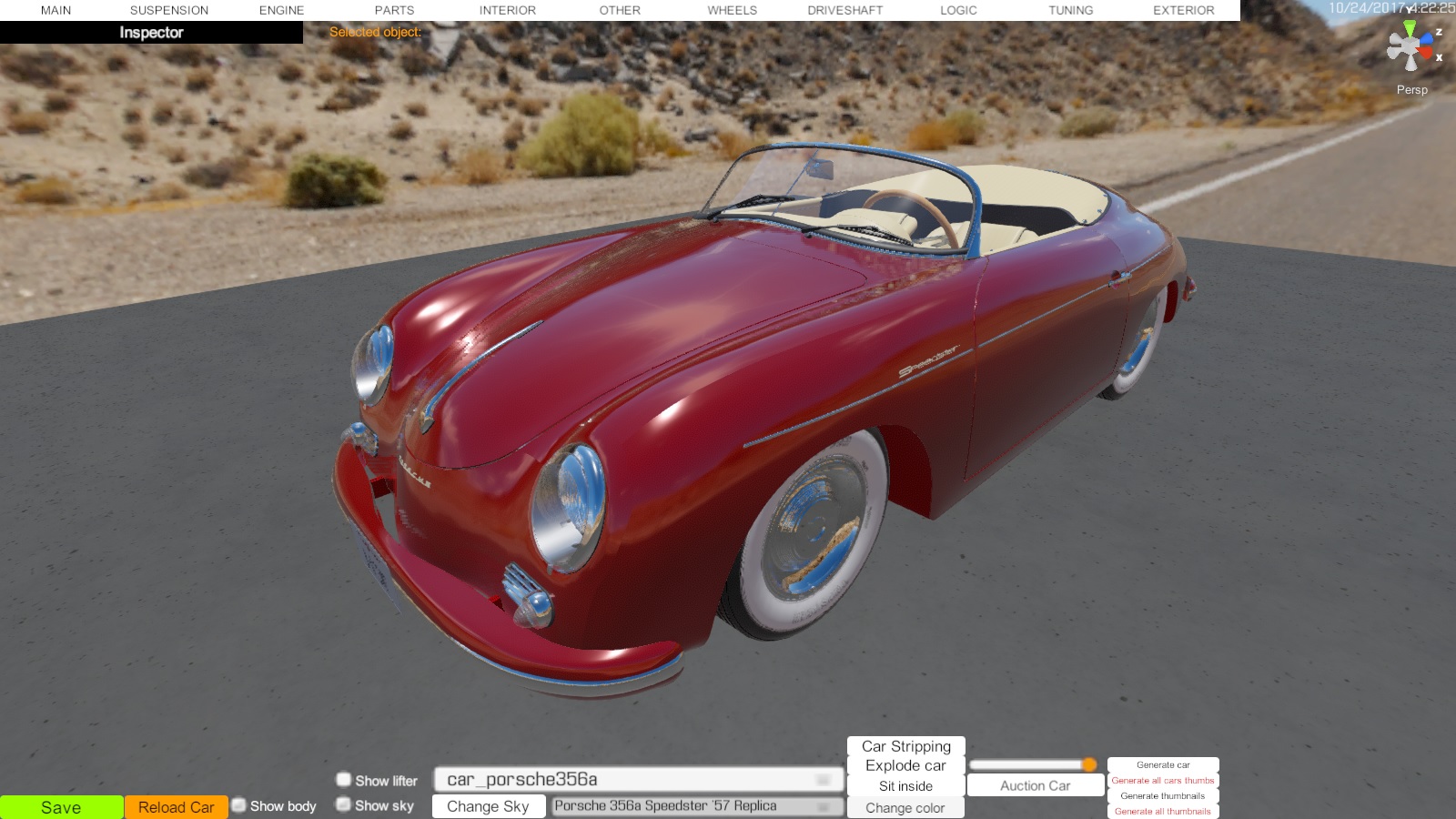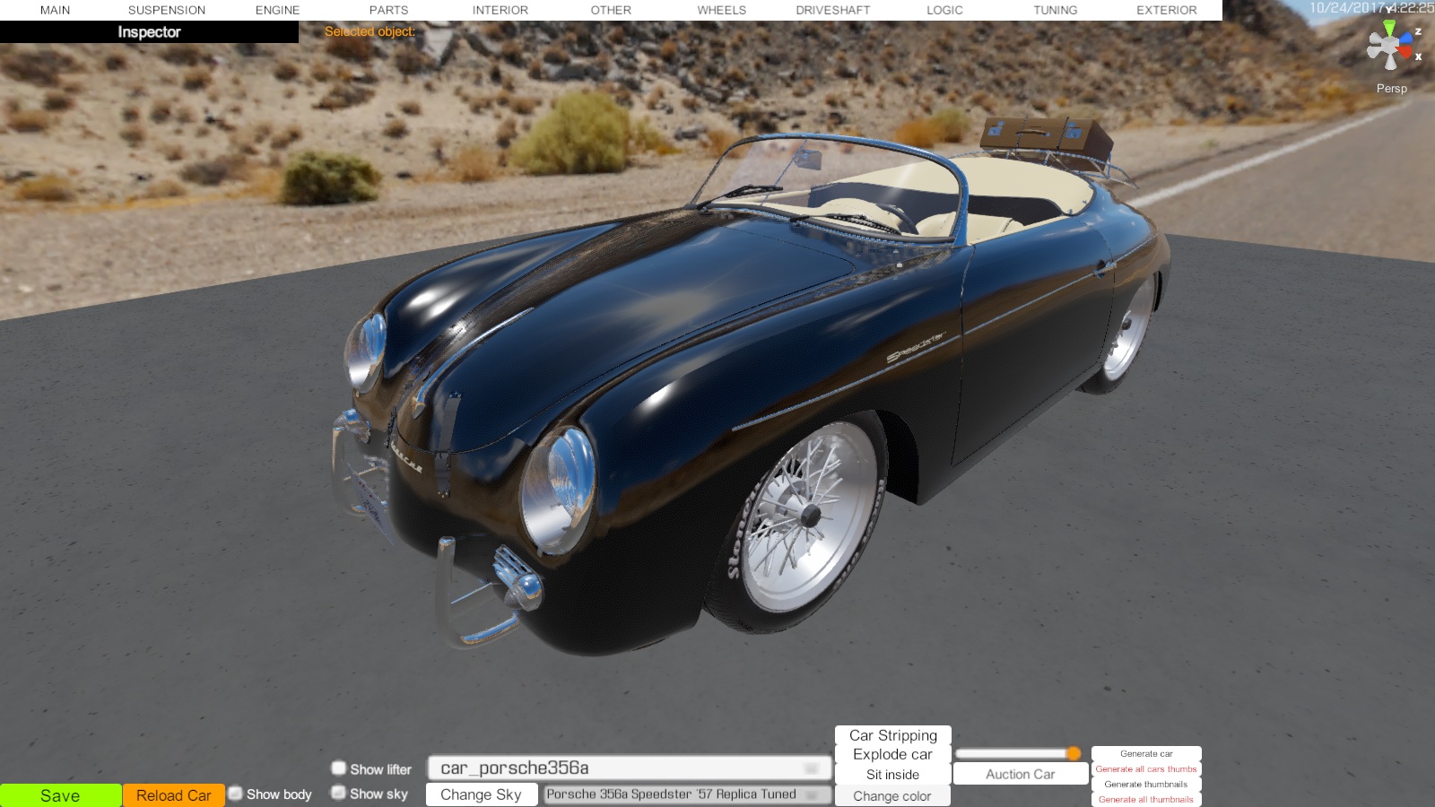Corrected Porsche 356a Speedster Replica. + Version of Tuned. + Tuning. I changed the steering wheel, engine, mufflers. Adjusted vacuum, akb. Has added a back beam, the air filter, a radiator, a forward number. How to install: leave the folder in which it is located in the \ SteamLibrary \ steamapps \ common folder \ Car mechanic simulator 2018 \ cms2018_Data \ StreamingAssets \ Cars Credits: Bunns |
