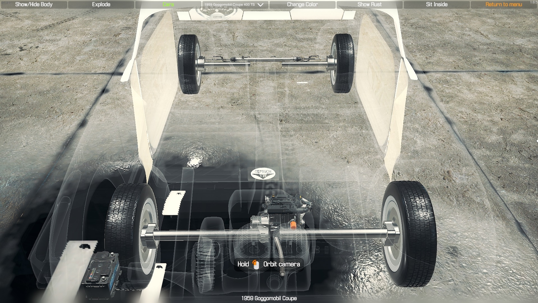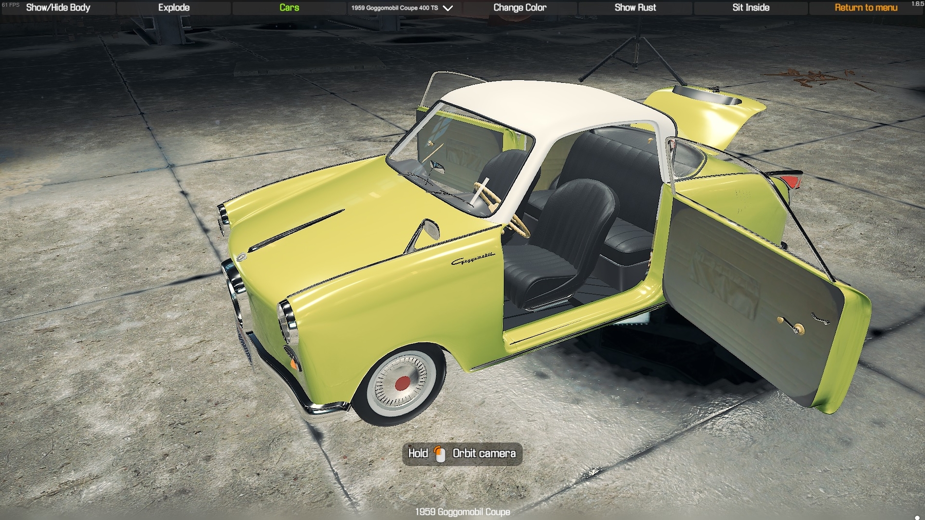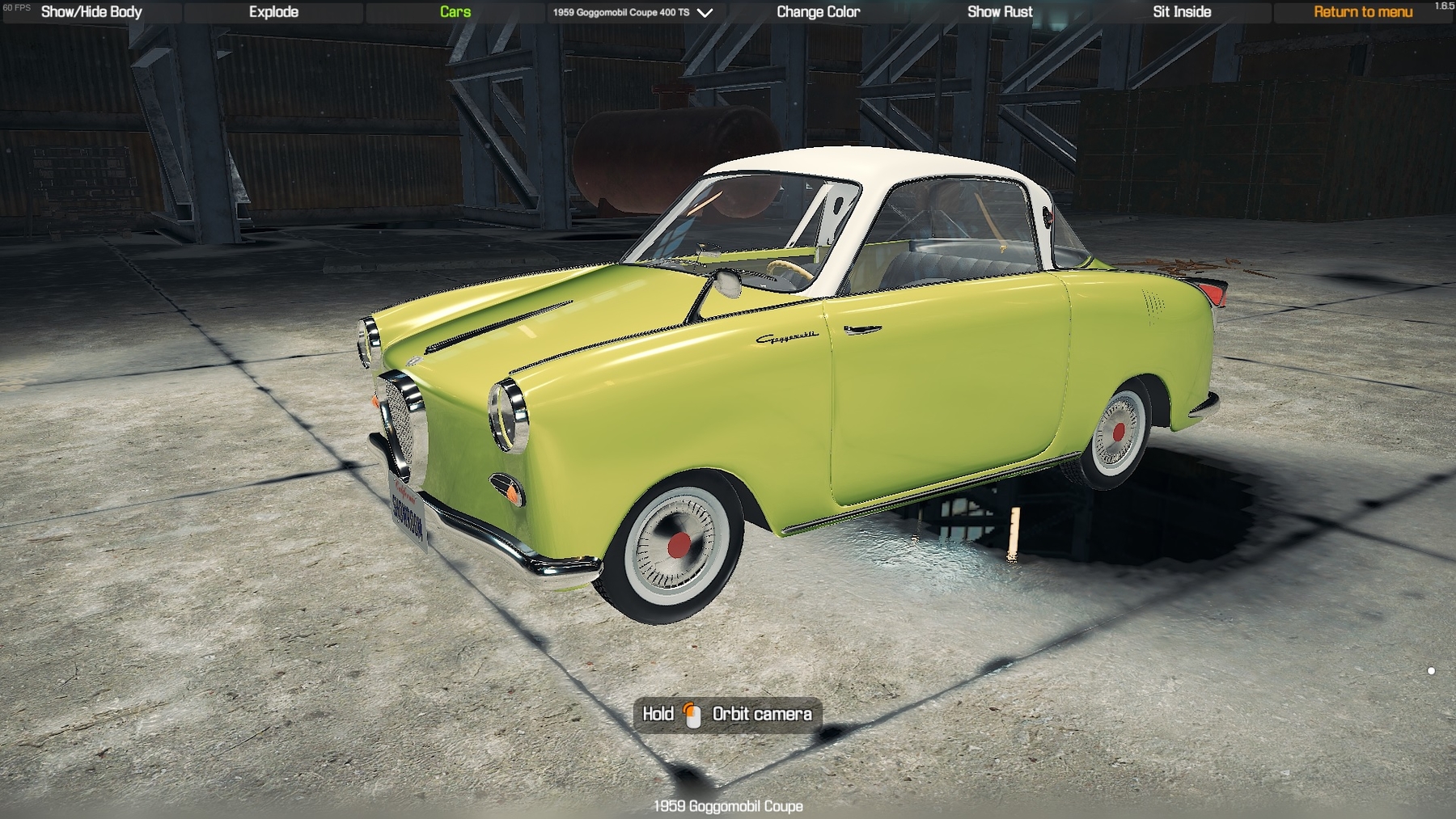 MOD CAR GOGGOMOBIL COUPE TS250 FOR CAR MECHANIC SIMULATOR 2018 Glas produced three models on the Goggomobil platform: the Goggomobil T sedan, the Goggomobil TS COUPE and the Goggomobil TL van. The engine was a two-stroke, two-cylinder unit with air cooling, originally with a volume of 250 cm, but later became available with increased volumes of 300 cm and 400 cm. It had an Getrag electric gearbox with manual clutch. The engine was behind the rear wheels. The suspension was an independent spring with rotary axles. From 1955 to 1969, 214,313 sedans, 66,511 coupes and 3,667 Transporter vans and pickups were built. Coupe TS The Goggomobil TS 2 + 2 coupe was unveiled at the IFMA 1957 along with an improved T sedan. It was available as TS250, TS300, V and TS400, a number reflecting the approximate engine displacement in cubic centimeters. The TS coupe is always ten to twenty percent more expensive than the T sedan. The total production volume of TS coups was 66511. TS 300 specifications and performance Specifications 1957 Goggomobil TS 300 Coupe are: Configuration - 2-stroke rear engine, 298 cc TS300 coupé tested by a British magazine in 1957 had a top speed of 59.2 mph (95.3 km / h) and can accelerate from 0 to 50 mph (80 km / h), in 27.9 seconds. Fuel consumption of 50.5 mpg (imperial 5.59 l / 100 km; 42.1 mpg -US) was recorded. A test car cost £ 625 including taxes of £ 209 in the UK market. TS 250 Specifications The specifications of the 1958 Goggomobil TS 250 Coupe are: Configuration - 2-stroke rear-mounted engine, 247 cc Options: Credits: Wolfele |