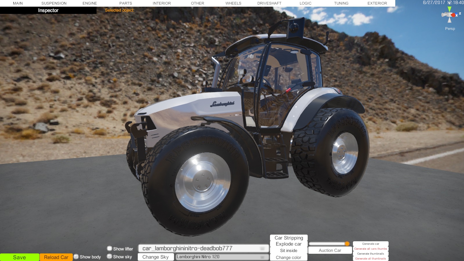 The corrected Lamborghini Nitro 120. Very large tractor, but on the lift is placed. The model is fully driveable and fully adapted for the game. Much has been added and redone. You can meet at a landfill and auction. How to install: Drop the folder this is in into \SteamLibrary\steamapps\common\Car Mechanic Simulator 2018\cms2018_Data\StreamingAssets\Cars Credits: Deadbob777 |