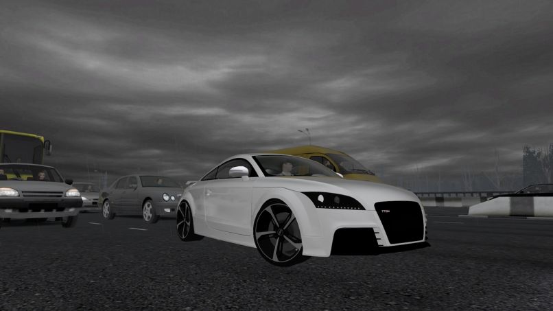Revised and adapted Audi TT RS for City Car Driving. Features of the modification: Completely rewritten all physics. Changed sound. Changed part of the textures of the cabin. All colors are re-registered (absent). List of extras: Red Salon. White Salon. Red Salon Wheels 1 Black edition Tinted in a circle Tinted headlights —Installation: Manual Credits: Sasha161rus, Kazah |