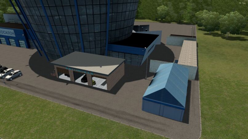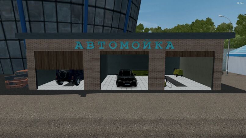 - Washing (As in the past fashion - lamps hang from the ceiling, there is a backlight from lamps inside the building, the word car dealership is on, UAZ has been added to the first wash box, its lights are on)