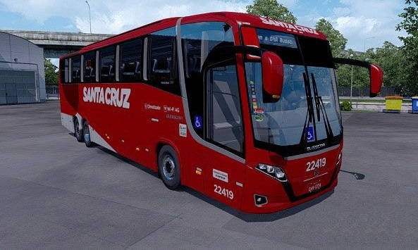This mod adds a Busscar New Visstabuss 360 6×2 & 4×2 bus to the game. Mercedes Benz. – Purchased at the Mercedes dealership. – There are 3 chassis options. – Animated passenger door. – Animated sign indicating the route, indicating a huge number of cities in the world to choose from. – Sun blinds on the windshield in 2 positions (above-below). – TV in the cabin. – Curtains in the salon – 3 colors. – Tinted glass in the cabin – 4 options. – Inserts on the external plastic / chrome model. – A small kenguryatnik – 3 options. – Upholstery in the cabin – 6 options. – Passengers in the salon. – Application of dust on the body of the bus in several versions. – Your interior. – Support for DLC “Cabin accessories”. – More than 100 different quality skins. Test version: 1.32.x – 1.34.x Credits: Ronald Cruz – model Fabian Espinoza – convert to game Paulo Marcos Skins Rafael Rodrigues – sounds Credits: Ronald Cruz |