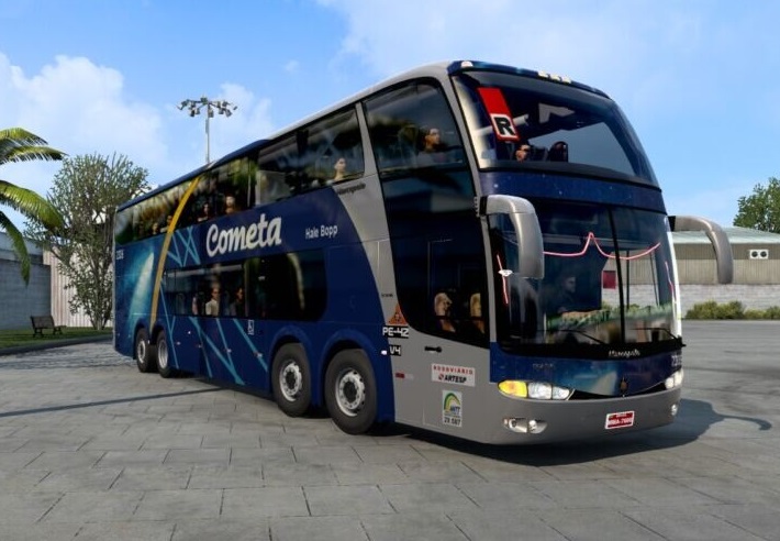 Marcopolo Paradiso G6 DD 8×2 By AMF for Euro truck simulator 2 Own interior, scania chassis, skins, animations tested on 1.40 Credits: AMF Credits: AMF |