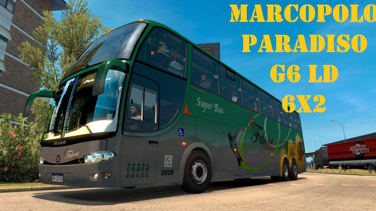Bus Marcopolo Paradiso G6 LD 6x2 for Euro truck simulator 2 own interior, animations, skins, realistic engine sound , compatible with dx 11, scania bus Author: zabbi kbir Credits: zabbi kbir |