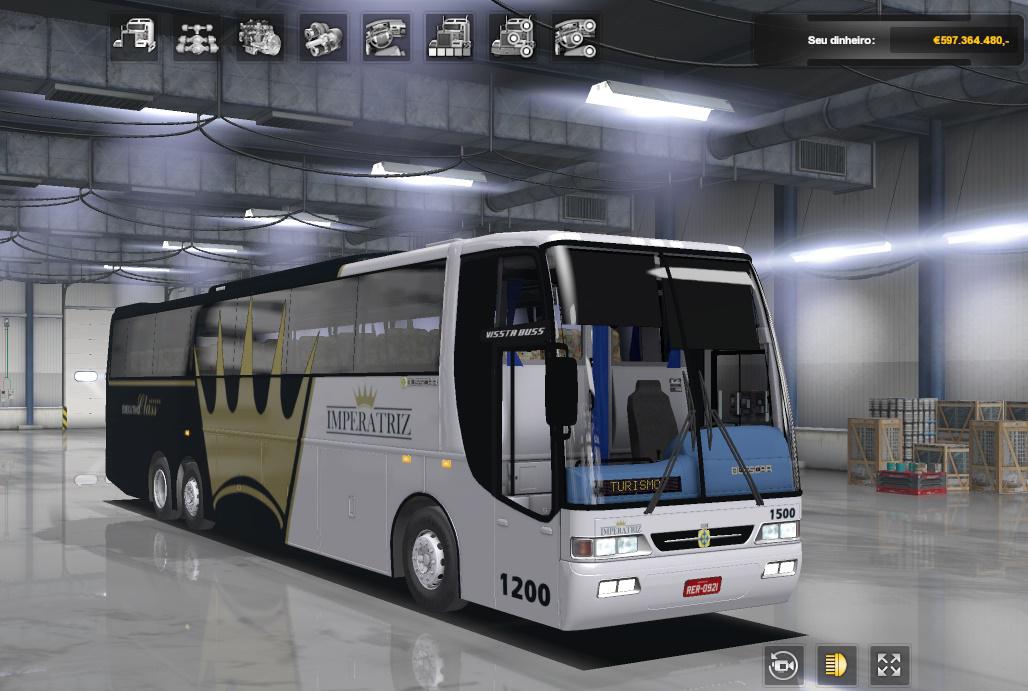 Busscar Vissta Buss – Mercedes Benz O-400RSD for Euro truck simulator 2 and American Truck simulator * Full Mod * No Mistakes * No Lost Of Fps * Detailed Interior * Various Paintings * Miscellaneous Accessories * Tested And Approved In 1.36 Credits: Brasil Mods Credits: Brasil Mods |