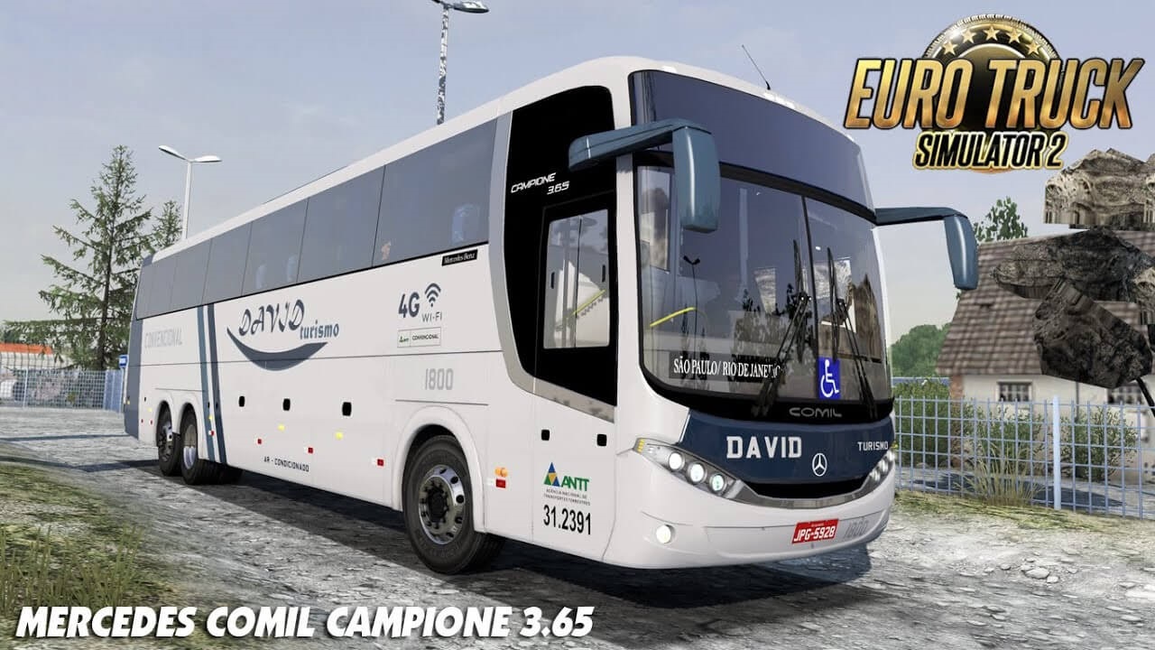 Mercedes Comil Campione 3.65 - this mod add a quality brazilian passenger bus mod for ETS2 players. Is built on a chassis with a 6x2 / 4 wheel formula, equipped with an original engine and gearbox. The authors recreated the characteristic interior of the cabin with prescribed animation, added a set of their own sounds, as well as five branded skins that you can choose when buying at a car dealership, or when tuning, in any of the garages of the ETS 2 simulator. Features bus Mercedes Comil Campione 3.65: - independent bus model - High quality 3D model - High quality detailed exterior - High quality detailed interior - the model has own interior - the model has own sound - the model has own wheels - passangers seats - present the illumination of arrow speedometer and tachometer - the character is correctly sitting in the driver's seat - the choice of engine power - the choice of transmission and gearbox - the choice of wheels configuration - choice of color body / metallic paint / skins - correct position of the Mercedes logo - Working headlights, brake lights, tail lights, front and rear turn signals, steering wheel and reverse signals; - The correct position of the player - There are external tuning - DLC Cabin Accessories support - Supports all major functions of the game - buy in Mercedes dealer Tested on game version 1.38.x Credits: Lucas Morais, Joao Pedro, Equipe zm |
