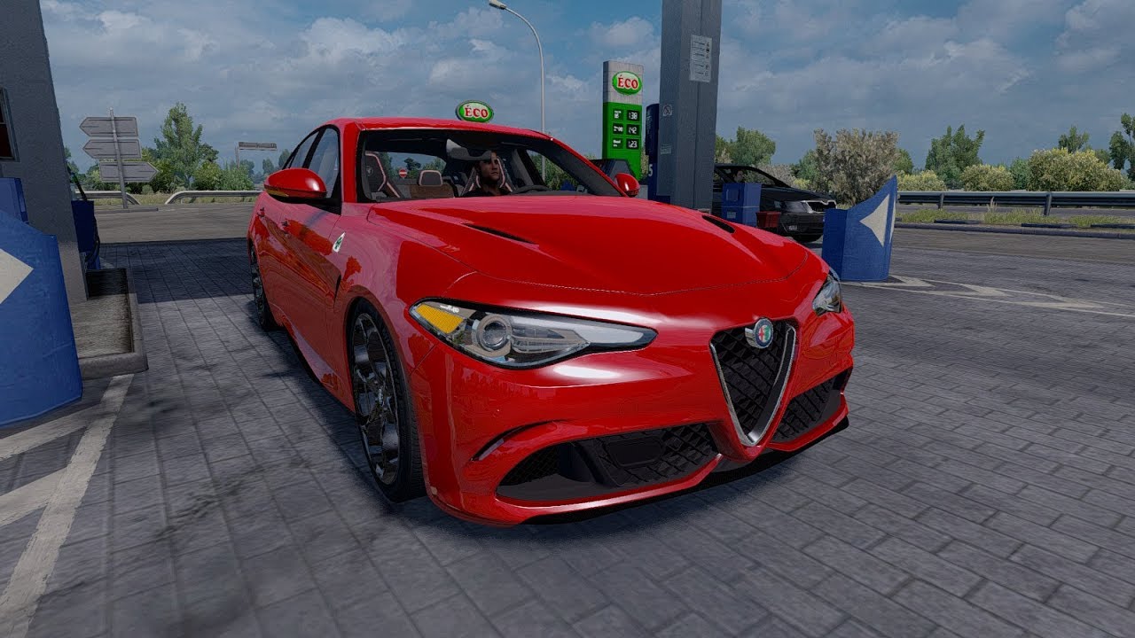 | Alfa Romeo Giulia - this mod add a great model of the Italian car Alfa Romeo Giulia for Euro Truck Simulator 2 and American Truck Simulator simulators. Impeccable interior and beautiful appearance. The mod includes realistic details such as custom rims, interior accessories, and authentic engine sounds. Players can choose from a variety of paint colors and customize the vehicle to suit their preferences. With its powerful performance and agile handling, the Alfa Romeo Giulia is a joy to drive in ATS.