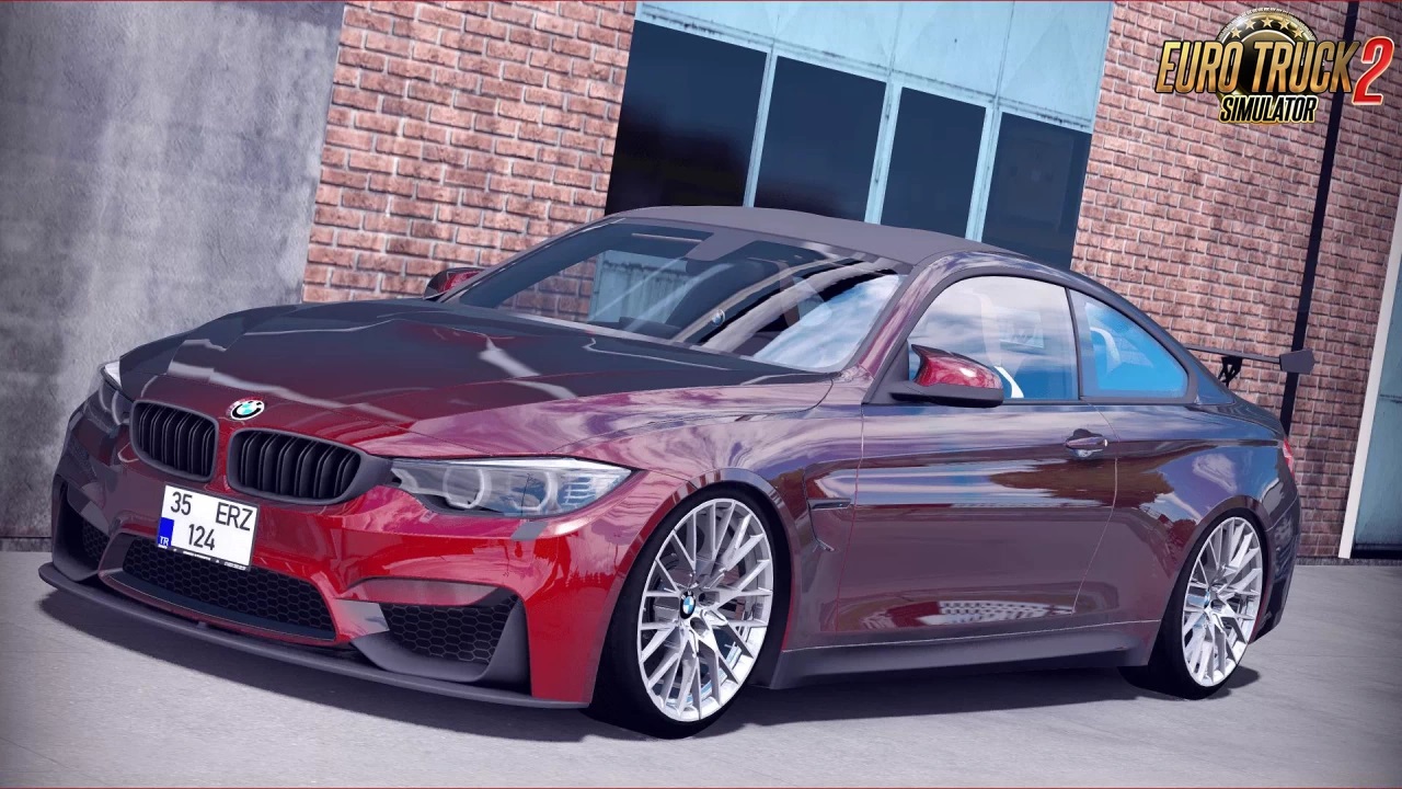 BMW M4 - high quality passenger car mod added for ETS 2 and ATS fans players with own interior and sound. The player of the ETS 2 simulator can choose from an assortment of two engine options with 456 and 550 horsepower, respectively, with its own set of sound effects, and a couple of six speed gearboxes. The BMW car does not have tuning, but branded wheels with low-profile tires will mitigate this drawback.Mod was adapted to the latest version with all standards of the game. Features BMW M4: - independent car model - High quality 3D model - High quality detailed exterior - High quality interior - the model has own wheels - the model has own interior - the model has own sound - Correct car proportions - Correct seat positions for 4 peds - working lights - the character is correctly sitting in the driver's seat - correct position of the BMW logo - the choice of engine power - the choice of chassis - the choice of wheels - the choice of body color / metallic paint - The correct position of the player - tunning accesories present - Supports all major functions of the game - buy in Acces Mod dealer Changes in v1.2: - Mod adapted to the latest patch 1.39 Animations Available: - Glass Animation - Signal Lever Animation - Wiper Arm Animation - Exterior, Interior Wiper Works Fine. - Warning Animations - Animated Scent Ornament - Gas Brake Pedal Animation Tested on game version 1.39.x Credits: Mert İrşi |