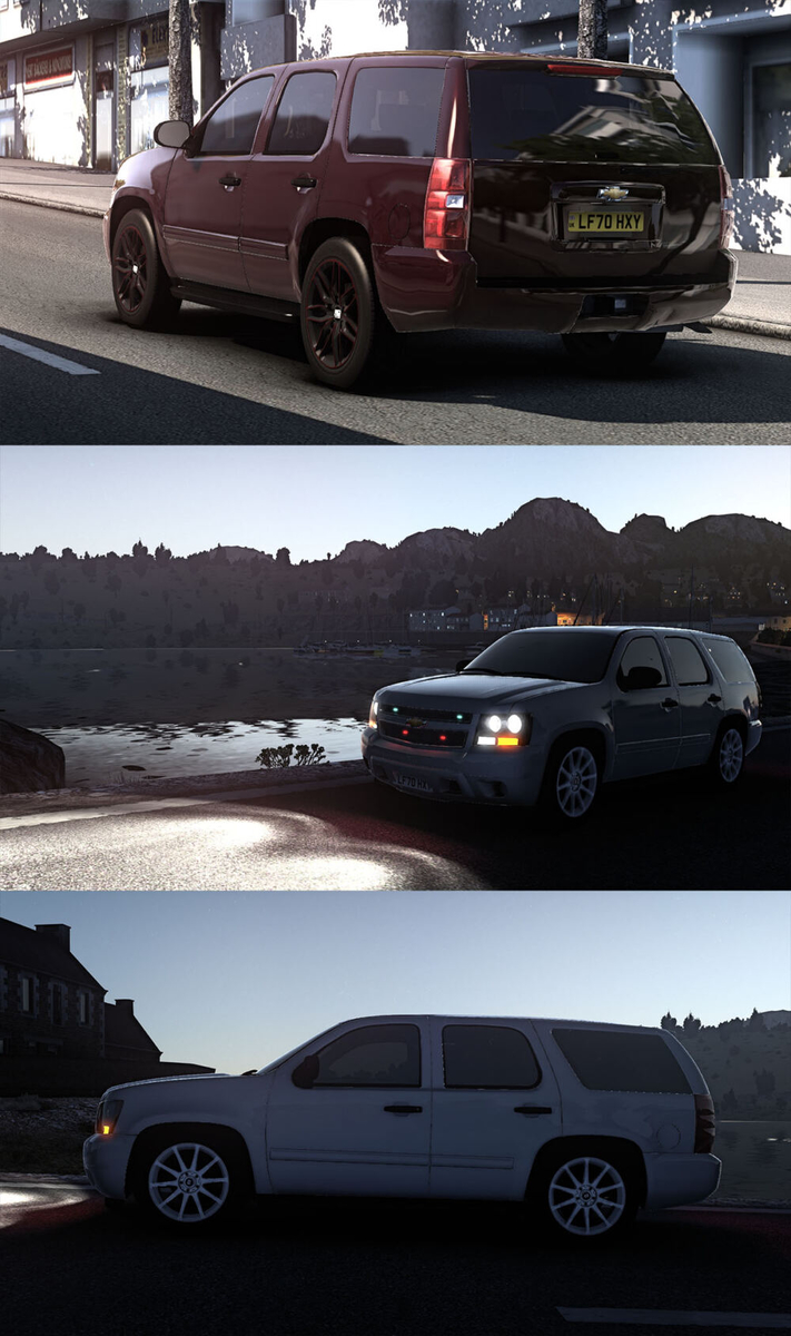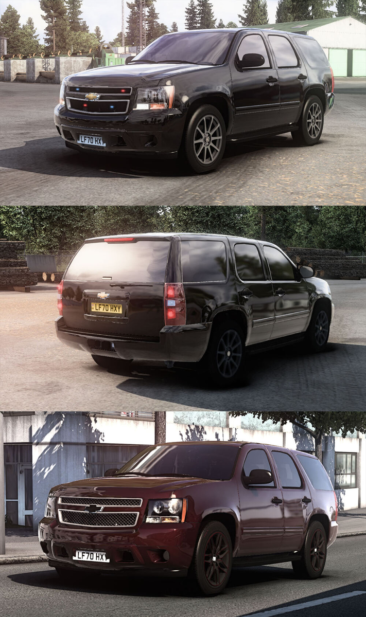 Specifications:- – Realistic 5.3 L V8 engine – Realistic 4-speed automatic transmission – LED Strobes & Beacon accessory – Interior accessories – 6 rims – 2 chassis (Rear-Wheel-Drive & All-Wheel-Drive) – High-quality interior and exterior – Endless colors in paintjobs along with some custom skins – Can be attached with a trailer (Caravan) – Excellent driveability and highway cruising CHANGELOG:- – Updated to game version 1.44 – Major edits and fixes *Free to edit for personal use* Credits: Nimit, Elaman, obelihnio |