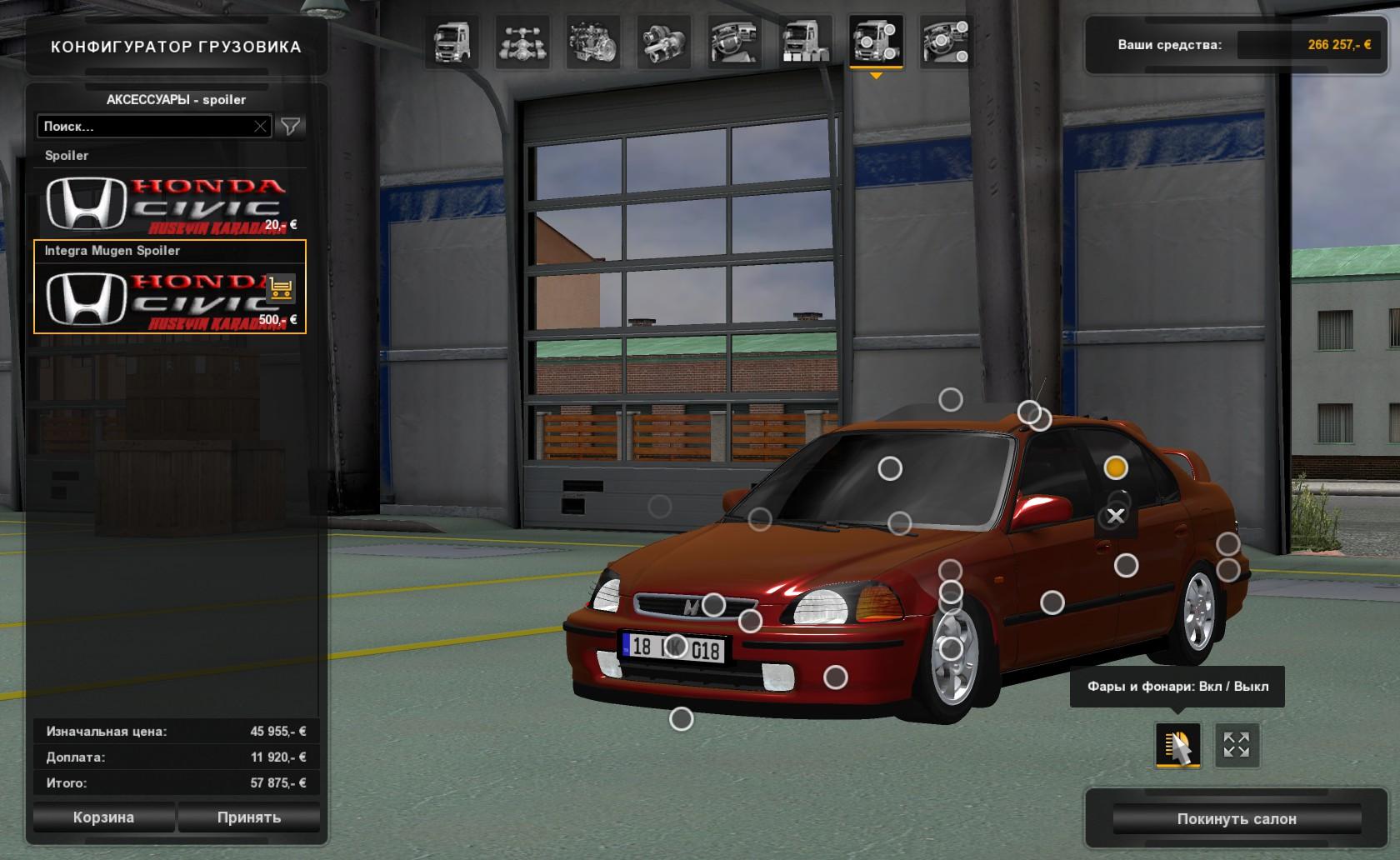 For sale in DAF Your interior Sound DLC Cab accessories Baked Textures Many tuning Lightmask Accesory Features – 3 Chasis – 25 Rims – 2 Tyres – 6 Headlights – 4 Rearlights – 11 Front Bumpers – 2 Rear Bumpers – 2 Spoiler – 1 Ceiling Spoiler – 1 Fake Sunroof Changelog Adaptation for 1.31 Fixed automatic gear changes Updated chassis Huseyin Karadana, Update and fix by ultramoddy Credits: Huseyin Karadana |