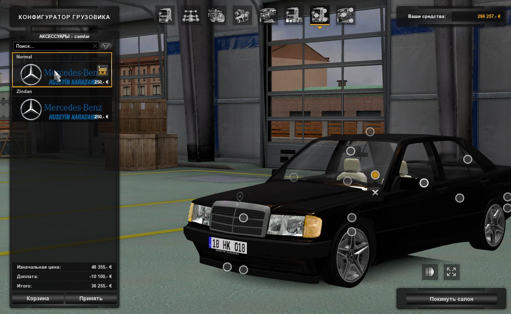 Find in Mercedes Your interior (2 options) Sound DLC Cab accessories Many tuning Lightmask Ao Render 3 Light 2 Rear Bumoer 2 Glass 9 Wheels 2 Tire Changelog Adaptation for 1.31 Fixed automatic gear changes Updated chassis Huseyin Karadana, update and fix by ultramoddy Credits: Huseyin Karadana |