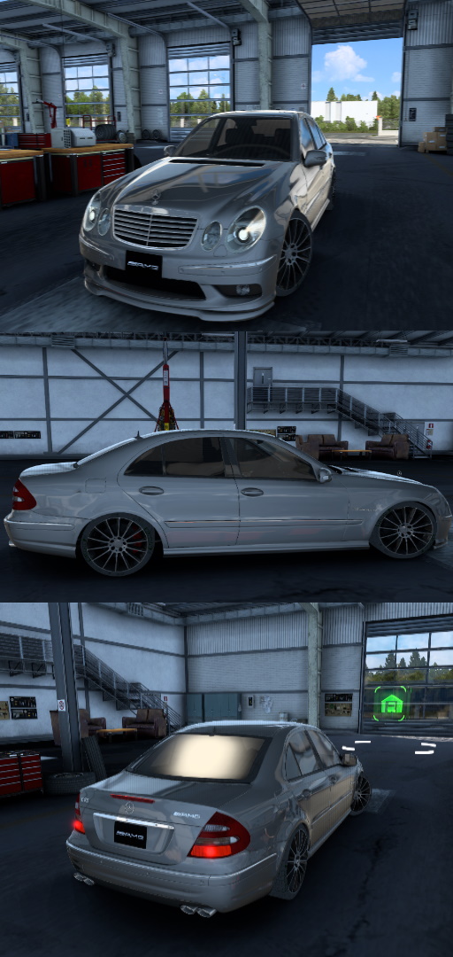 this a new car Mercedes-Benz E55 AMG (W211) HQ interior and exterior 2 options interior gray and beige with 2 steering wheel wheels original windows and wipers sound Amg Credits: YAHIA ABID |