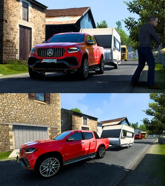 Specifications:- – Can be used with a trailer (caravan) – Two engine options (2.3L L4 and 3.0L V6) – Tuning options, eg; side skirts, front bumper guard, tow hook, etc – 3 rims (Stock, AMG, Off-Road) – Two body types (Stock & AMG) – High-quality interior and exterior – Endless colors in paintjobs *There is also a provision in the .zip archive if you want to add your own license plate* CHANGELOG:- – Adapted for ETS2 – Fixed headlights – Fixed mirror – Edited some materials – Minor edits and fixes – Added more paintjobs – Reconfigured sound on low to high RPMs (silent cabin at low RPMs) – Reconfigured engine (realistic specifications) – Reconfigured transmission (realistic specifications) – Reconfigured chassis (realistic specifications) – Reconfigured tachometer animation and indicator delay Credits: Nimit, VakkoTeam, Metin Tinaz, Harv |