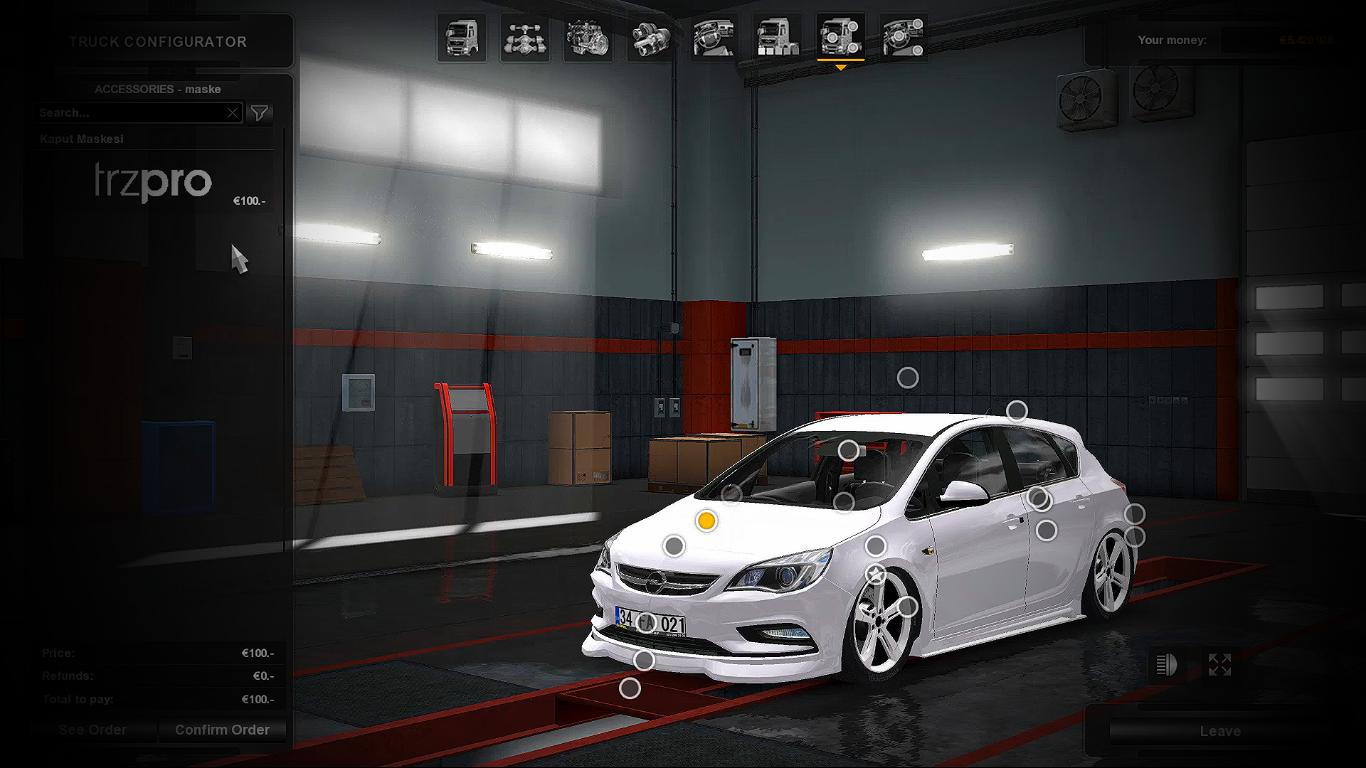 6 rims: a4, s5,rs7,astra j, astra j businnes,opc 6 front bumpers: astra k, astra opc, insignia, scirocco r, 2011 astra, 2013 astra, 3 rear bumpers: stock, stock with diffuser, opc 0 real sound 1 side skirt 1 spoiler 1 bumper curb 1 hood mask 3 chassis: stock suspansion lower suspansion lower front suspension detachable front/rear plates toys dlc all animations are working all mirrors working all dealers Credits: trzpro, Fuat Aydoğdi, Emre Değirmen |