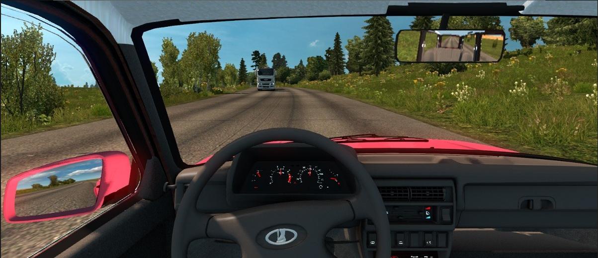 In version 2.0 for Euro Truck Simulator 2 (v1.31.x, 1.32.x): Fixed chassis, steering wheel and other minor fixes - 1 cabin - 1 chassis - Beautiful (including metallic) - Sold in the showroom of DAF - Tuning - Swheel wheels (3 options) Credits: Salahov |