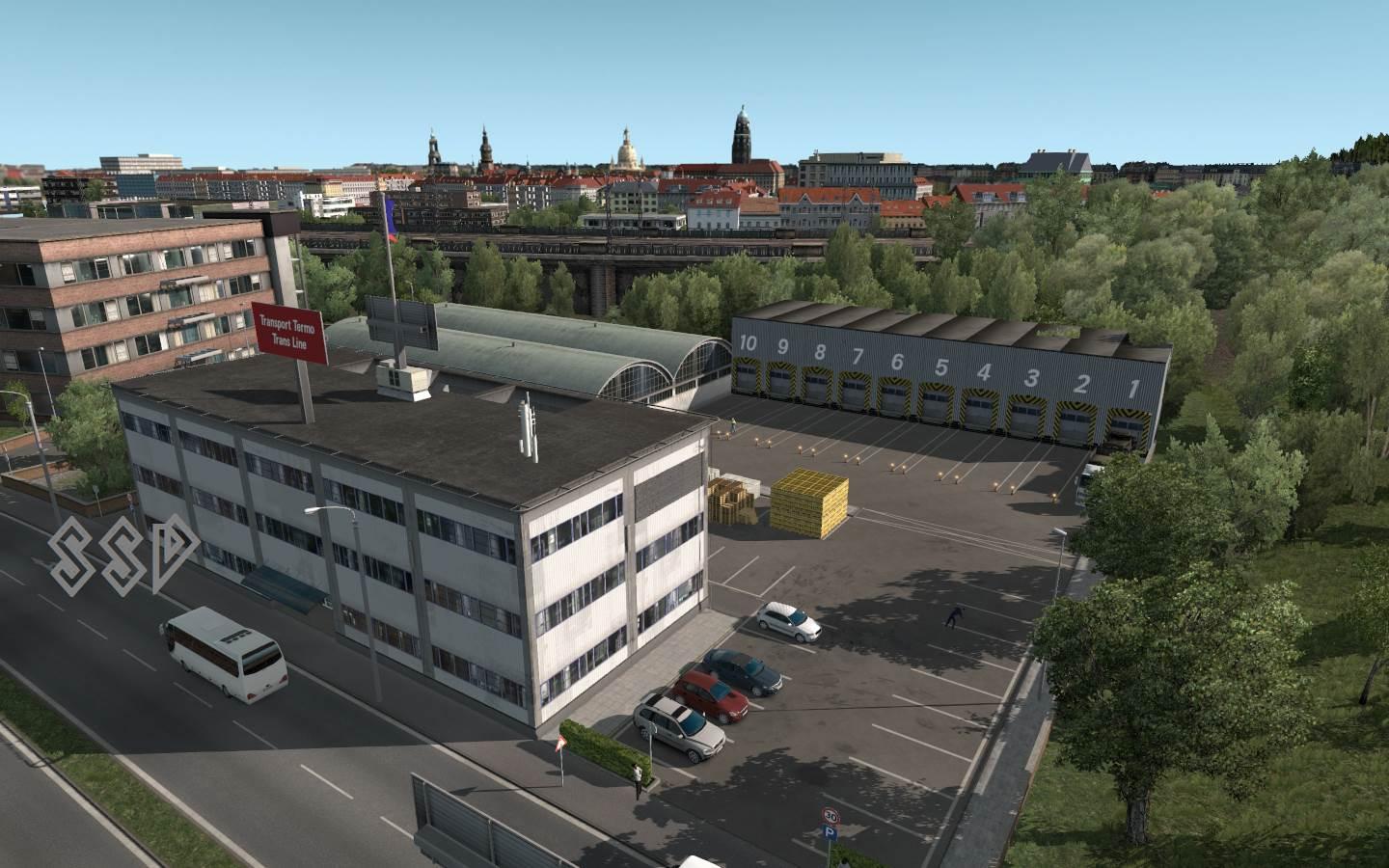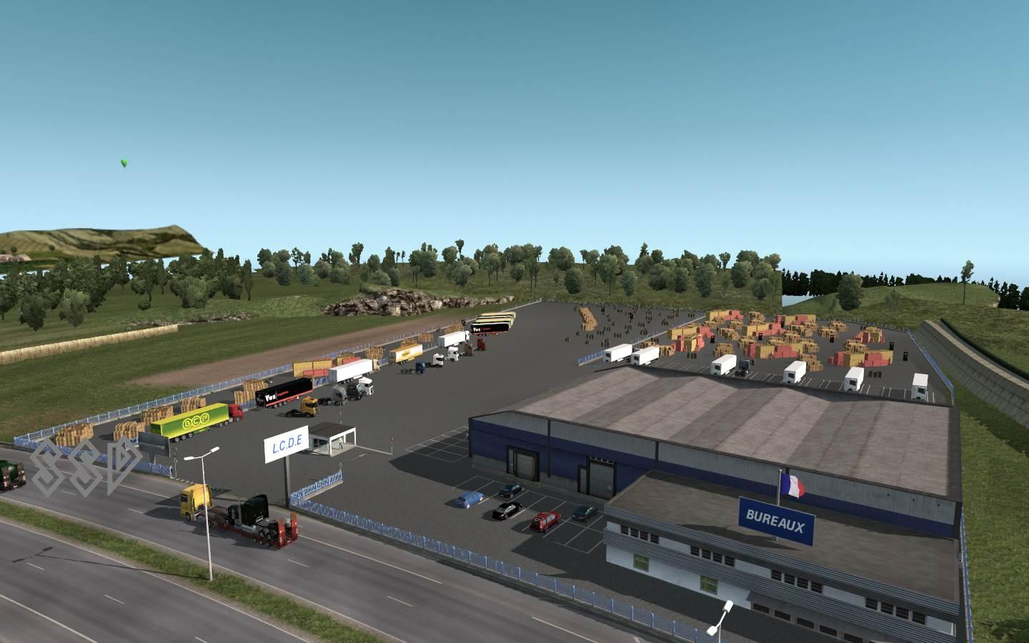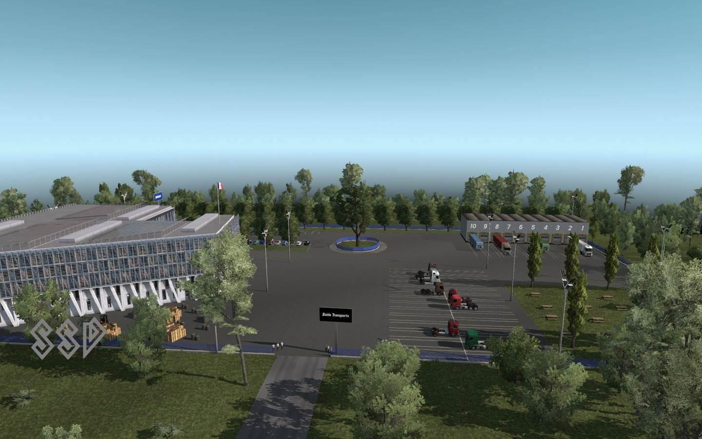 17 warehouses with virtual companies, you DON’T need any DLC - Bruxelles (Ficfic) for Transports Logistics Internationaux - Bruxelles 2 (DkCH) for Nakamura E-Sports - Calais (Ficfic) for Bside Transports - Dijon (Ficfic) for Sotracom Pinguet - Dresden (Farmer'S [TV]) for Transport Termo Trans Line - Genève (DkCH) for Wallois & Fils - Kiel (Farmer'S [TV]) for S.E.C - Lille (Ficfic) for L.C.D.E - Luxembourg (DkCH) for Off White Logistics - Metz (Ficfic) for L'Hermine Transport - Metz 2 (Ficfic) for Lorraine Transport - Metz 3 (Ficfic) for Moulins Transport - Paris (Ficfic) for Trans-Alsace - Paris 2 (Ficfic) for Transport BTB - Reims (DkCH) for S.T.F.E - Strasbourg (Ficfic) for CTA Credits: Ficfic, Farmer’S [TV], DkCH |