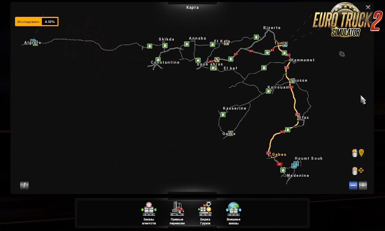 New version 1.6: - Added new routes. - Added new cities. Algiers Houmt Souk - Added ferry. Algiers-Marseille. - Minor improvements made. Compatible with other maps. Not compatible with maps of TSM and MARIO . *Required all DLC (Going East!, Scandinavia, Vive la France and Italy) Connect with other maps in the mod manager!: PM230_RM_v131_roadconnection RusMap-map_v1.8.1 RusMap-model2_v1.8.1 RusMap-model_v1.8.1 AfroMap promods-def-st-v231 promods-map-v231 promods-media-v231 promods-model3-v231 promods-model2-v231 promods-model1-v231 promods-assets-v231 RusMap-def_v1.8.1 There is 1 file in the archive. Connect to other maps in the mod manager in any order. Credits: dimon_26 |