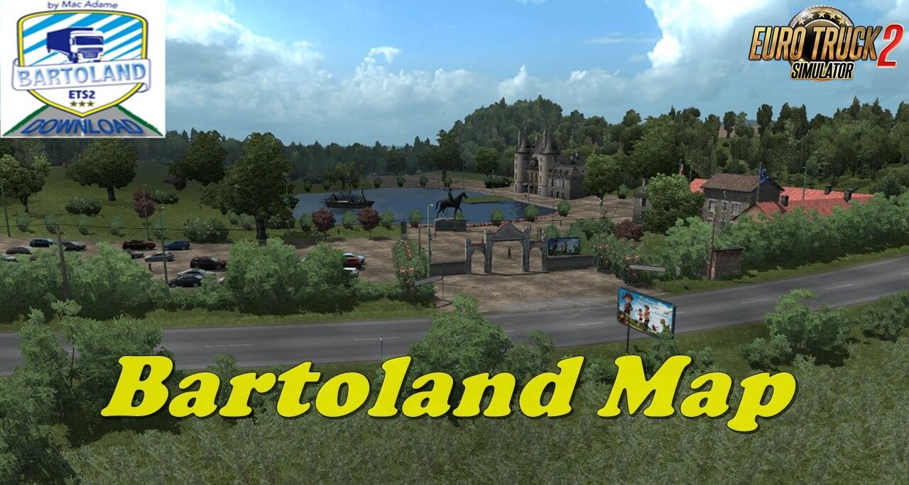 Bartoland Map - this mod add a map in 1: 1 scale with elements of the real situation of villages and places of loading. Bartoland is a semi-fictional map, which author spend hours mapping for ETS2 players. To drive on Bartoland, you need to create a new profile, validate the map Bartoland, without any other maps mods,but you can add traffic mods, retro, graphics, some work very well... Features Bartoland Map: - 38 towns or cities - 180 enterprises - 18 garages - 466 kms of roads and paths and it will continue to grow... - required a new profile - required all map DLC's Changes in v2.2: - adapted to the latest game patch 1.40; - added new roads and cities. Credits: Mac Adame |