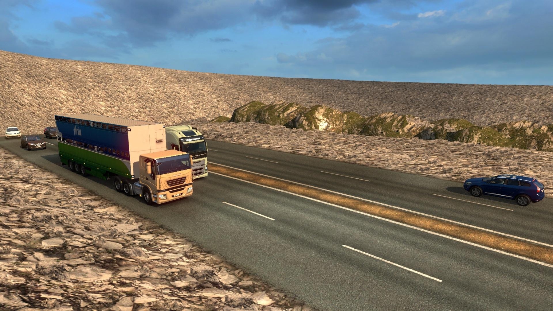 Standalone map, when creating a profile, you must select the module D2.mbd The map is similar to the map from the game Truckers 2 Slightly increased the city compared to the standard map D2. The roads are already almost all built, fully functional map, on which you can carry goods, buy trucks, etc. Made from standard textures and prefabs, so it is small in size. 1) Increased the amount of money at the start of the game 2) The economy of the game is slightly changed. 3) Reworked banking system (5 credits, increasing the credit limit depending on the player’s level) Credits: Ivan |