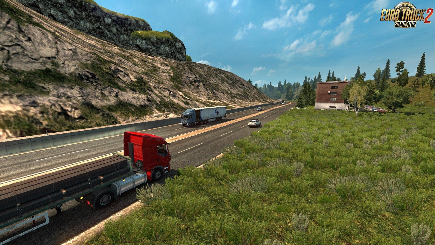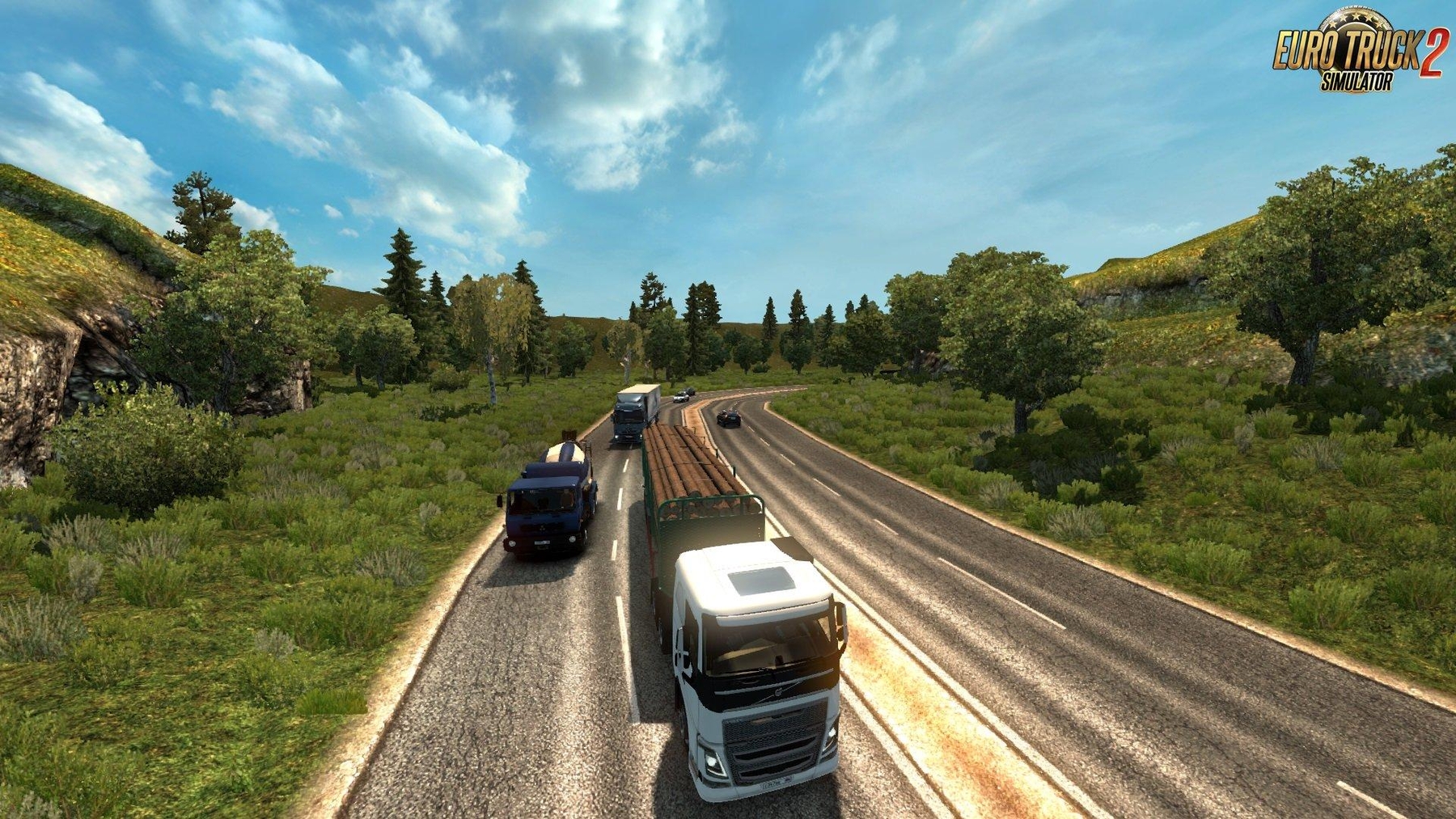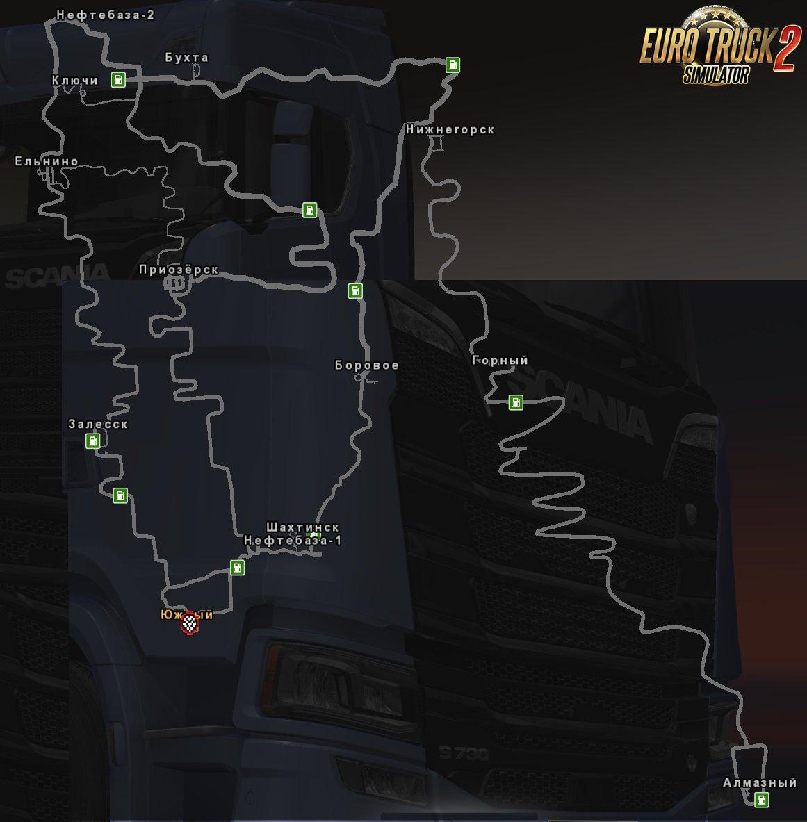 Standalone map, when creating a profile, you must select the module D2.mbd *Required DLC Scandinavia The map is similar to the map from the game Truckers 2 Features: The map was made for yourself and just try your hand at mapping. As it was clear from the name of the card, it copies the map from the famous game as much as possible and now it is made with small surrounding roadsides compared to the capabilities of the ETS 2 engine. The cities are slightly enlarged compared to the standard D2 map. The roads are almost all built, a fully functional map on which you can carry goods, buy trucks, etc. The map is made of standard textures and prefabs (almost), so it is not a big size. If the players are interested, the project is planned to be developed; by the number of letters, I will understand whether the project is interesting or not. New version 1.1: 1) The economy has changed, now there is a load on the base, damage and price of delivery of fragile and expensive cargo have been corrected 2) Service stations have been transferred near the city of Yuzhny - now it is in place, the area near the city of Yuzhny has been redone, radars have been added near the city of Yuzhny, patrols have been added near Yuzhny 3) The city of Yuzhny was rebuilt - the fence of yard territories and roadways, pedestrians, a smoother landing and takeoff of airplanes were added. 4) The tunnel on the highway Shakhtinsk - Borovoye has been corrected (it is now in grief and sticking stones removed) 5) The guardians of law and order are now moving to the VW Passat and BMW 5 6) The distance of drawing the Elnino-Yuzhny roads, the Southern cities and the Southern-Bukhta, Bukhta-Elnino and Nizhnegorsk-Gorny roads are increased (including Shakhtinsk, Borovoye, Nizhnegorsk, Bukhta, Klyuchi and Gorny) 7) On the Zalessk-Yuzhny highway: signs were installed added side barriers, slightly changed the height of the road. 8) The mountain was corrected, the TradeAux base registration in Borovoy was corrected 9) The number of cows near Yelnino was increased 10) The roadsides along the Borovoye-Nizhnegorsk highway were changed (not the final version), the mountains near Nizhnegorsky were added 11) The name of the cities of Yuzhniy and Zalessk 12 was fixed the sticking texture of the mountain in the Bay 13) The turn is changed in the Keys from the side of Elnino 14) The sides of the road were changed and steeper turns on the road from the service station near Shakhtinsk to Shakhtinsk. 15) Oil depots were added near Shakhtinsk and on the main road Elnino-Bukhta FILE "D2_1.0.1_v1.32.scs" - you can delete from the mod folder, you do not need to start a new game. WHO HAS NO DLC FRANCE - "no_dlc_fr 1,32.scs" from the previous version do not delete. Credits: Vanya_87 |