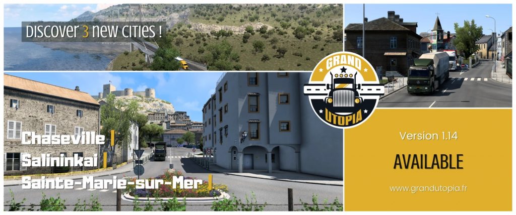 The virtual world of Euro Truck Simulator 2 invites all lovers of trucks to visit the new Grand Utopia card. On the vast territory, many roads and interesting interchanges, manually built cities and picturesque nature were spread. Standalone map Scale 1: 1 49 cities; 199 companies 22 dealers of trucks About 7500 kilometers of roads Thorough approach to details; The economy is adjusted; Traffic is configured; For work, all DLC cards are needed; Built from standard molfs, so very little weighs and is well optimized. Changes: Compatibility with ETS 2 V1.45 Restoration of the road D5 Reconstruction of the backbone of the rally A1 Update the badge icon Improving the card next to the Perign and next to the career Removing the fare on the island of Chateau d’Ours Adding markers on the highway Adding 2 attractions Adding bus stops in Stellamar, Gerarme, Lossande-Zheles, Ba-Du-Shayen, Shato-D’Ur, La Josephine, Kurfayirak, Port Elvinka, Tour, Utopia-Portuera and Montsha-Soreng zone Adding a bus icon for existing bus stops in Belmon, Granville, Riviera-Insas, Lelrotas, Alingsase, Laverne, Larzak, Pois Du-Nor, Jean-Du-Bartaile, Wil-Mari, Shavanny, Kenzi and Saint-Benois Launch: you need to create a new profile and choose a grandutopia.mbd module Credits: MyGodness Credits: MyGodness |