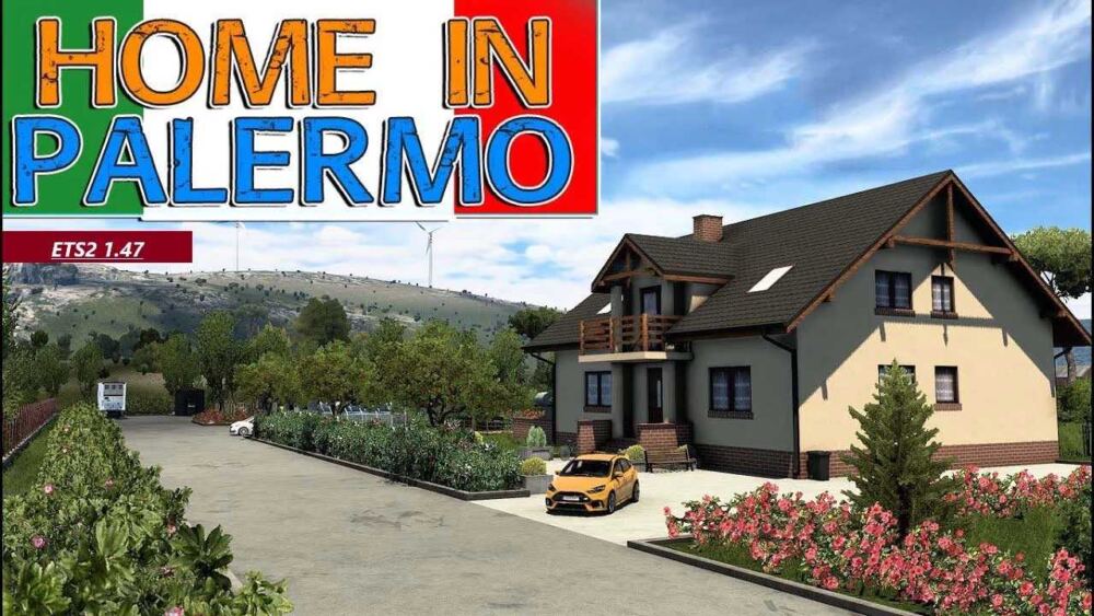 This add-on adds a house in Palermo, Italy. In the area around the house there is a place to sleep, a parking lot and a place for refueling the truck. Modification to work requires ETS 1.47 and all map DLC’s. Credits: huberT |