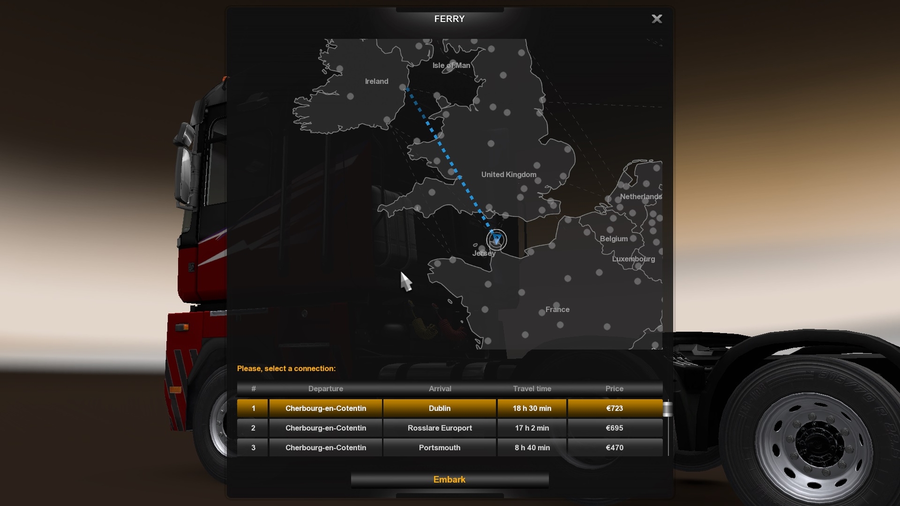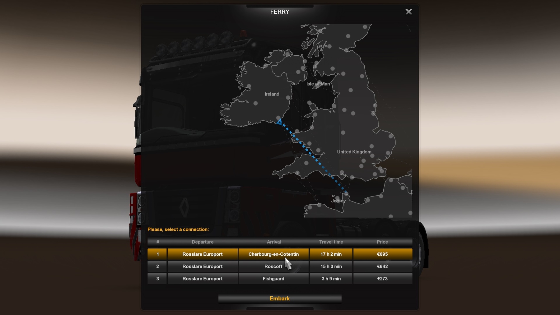 This package contains additional real-world ferry routes from Ireland for Promods v2.51 adds the following routes: Rosslare-Roscoff Rosslare-Cherbourg Dublin-Cherbourg Requires ProMods v2.51 to function properly! 6 DLCs (Going East!, Scandinavia, Vive La France !, Bella Italia, Beyond the Baltic Sea & Road to the Black Sea) are required to run this mod. Credits: Randallator |