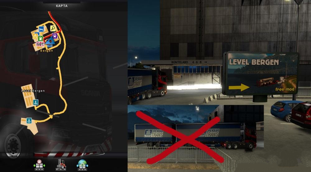 Level Bergen – Mod obstacle course After connecting – In Bergen will be a new port From it is (corridor) route with obstacles. The heavier your cargo, the more difficult to pass. You need to get started: DLC: Scandinavia Going East Viva La France Italia Credits: Svo43 |