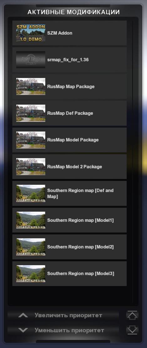 Map for ETS2 - SZM Addon 1.0 Demo for version 1.36. SZM Addon is a new free publicly accessible mod project for the ETS2 game, working in conjunction with RusMap and South Region maps. The project presents several areas of the Leningrad region, as well as settlements, such as Tikhvin, Alekhovschina, Vinnitsa. The project is integrated into Rusmap through congresses in the area of Novaya Ladoga, Lodeynoye Pole. INSTALLATION: Installation Order: - SZM Addon 1.0 - Fix for 1.36 SouthernRegion - Rusmap 2.0 - SouthernRegion 7.9.0 REQUIRED TO READ: DISCLAIMER: ATTENTION! The map used objects of the RusMap and Southern Region projects. All rights to the models belong to their authors. Map is compatible with the traffic pack from Jazzycat. Do not forget to upgrade the traffic pack to compatible with version 1.36! Version of the game for the Map: 1.36. Required map dlc: (Going East, Scandinavia, Viva la France, Italia, BeyondBalticSea, RoadToBlackSea). Map author: Valery 10AVOID Object Author: Denis DENLOG Consulting support: Artem Polynsky. Credits: 10AVOID, DENLOG |