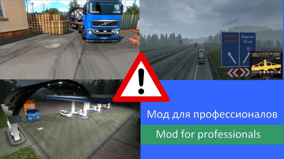 En Mod “Min Info” (Minimum Information) – Supplement does not claim to be unique, but it brings the game to reality. Differences and features: MOD completely removes all invisible fences on the roads. Replaces all activation symbols (on bases, gas stations, ports, etc.) with simple road hatches. Fully hides tags and other tips of the location of the semi-trailer for delivery. There is only a flag on the map. The unloading point is marked by only two road cones which indicate where the rear part of the trailer should stand. Parallel trailer parking depends only on your eye. Important!!! If you forgot how your delivery trailer looks like, go to the game menu and in the upper left corner click on the delivery details. complicates parking a trailer on the base. Test on Steam-version of the game ETS 2 v.1.34 +++ For more realism, I recommend installing the mods: RHP; STADrive 5; Mirror. If you liked Mod, you can support the idea financially. Yandex wallet: 410011362754342 WebMoney: Z506212235871; E295004615366; R237127917407 ====================================================== Ru Min Info (Минимум Информации) – Дополнение не претендует на уникальность, но приближает игру к реальности. Отличия и особенности: + Мод полностью убирает все невидимые ограждения на дорогах. + Заменяет все символы активации (на базах, заправках, портах и т.д.) на простые дорожные люки. + Полностью скрывает метки и прочие подсказки места нахождения полуприцепа для доставки. Остаётся только флажок на карте. + Место разгрузки отмечено только двумя дорожными конусами которые указывают на то, где должна стоять задняя часть прицепа. Параллельность парковки прицепа зависит только от Вашего глазомера. Важно!!! Если забыли как выглядит Ваш прицеп для доставки, то зайдете в меню игры и в верхнем левом углу нажмите детали доставки. усложняет парковку трейлера на базе. Тест на Steam-версии игры ETS 2 v.1.34 +++Для большего реализма рекомендую установить моды: RHP; STADrive 5; Mirror. Если Мод Вам понравился, то можете поддержать задумку материально. Яндекс-кошелёк: 410011362754342 WebMoney: Z506212235871; E295004615366; R237127917407 Credits: SCS Software, Holodok Credits: Holodok |
