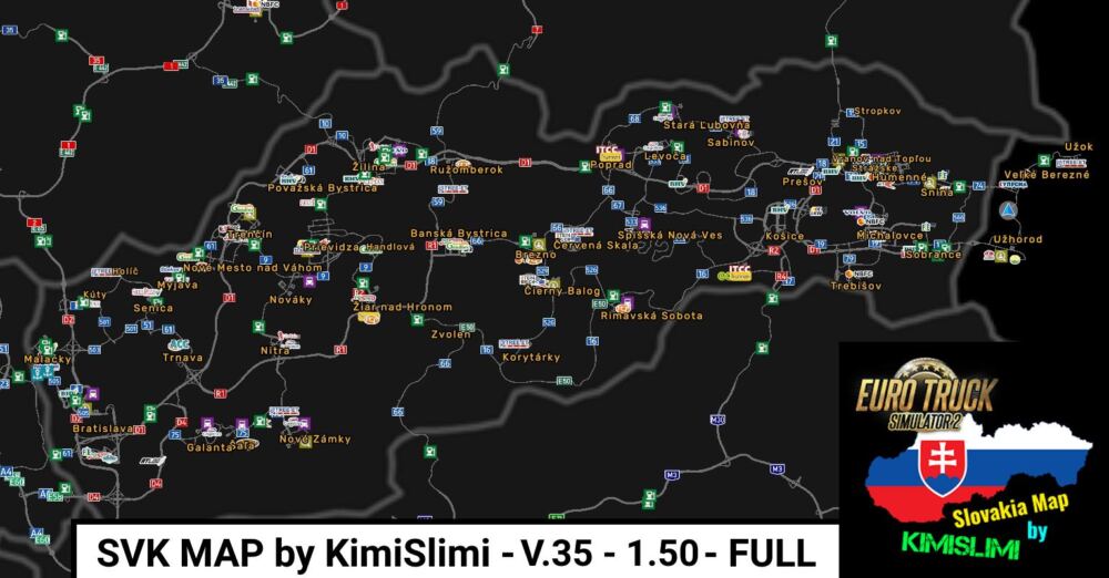 | Hello, my name is KimiSlimi and I’m is creating a Slovak map for the whole SCS Europe for the game Euro Truck Simulator 2.