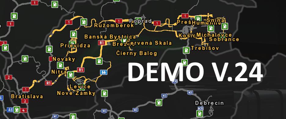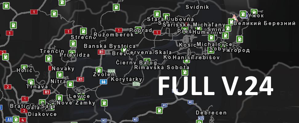 WHAT IS NEW IN V.24 – DEMO? + Added 2 New Cities (Prievidza, Nováky) + Reworked 1 City (Nové Zámky) + FIXED ERRORS WITH GARAGES, COMPANIES, DELIVERIES, TRUCK DEALERS, CRASHING GAME and SERVICES!!!! WHAT IS NEW IN V.24 – FULL? + Added 3 New Cities (Prievidza, Nováky, Strečno) + Reworked 2 Cities (Nové Zámky, Korytárky) + FIXED ERRORS WITH GARAGES, COMPANIES, DELIVERIES, TRUCK DEALERS, CRASHING GAME and SERVICES!!!! —————————————————————————- NOW IS MAKING IN MAP (FULL): Komárno Medzilaborce Malacky OLD DEFINITION OF MAP: It’s New Slovakia Map with all of Europe countries. You will need expansion – ETS 2 Going East and Baltic Sea. INCLUDED DEMO: (Free) – 19 New Slovakian Cities (Humenné, Snina, Michalovce, Trebišov, Poprad, Nitra, Nové Zámky, Brezno, Čierny Balog, Levice, Prešov, Sobrance, Košice, Ružomberok, Banská Bystrica, Bratislava, Červená Skala, Prievidza, Nováky) – 1 City with ProMods (Trnava) INCLUDED in FULL: (5€) – 33 New Slovakian Cities (Humenné, Snina, Michalovce, Trebišov, Poprad, Nitra, Nové Zámky, Stará Ľubovňa, Sabinov, Brezno, Čierny Balog, Levice, Prešov, Sobrance, Košice, Ružomberok, Banská Bystrica, Bratislava, Červená Skala, Rimavská Sobota, Haniska, Svidník, Ružomberok, Trnava, Zvolen, Korytárky, Galanta, Šaľa, Diakovce, Holíč, Prievidza, Nováky, Strečno) – 3 Ukrainian Cities (Uzhhorod, Velikyj Bereznyj, Uzhhok) – Real Slovakian Roads and Signs (with some road changes) – For version 1.36/1.37!!!! – Thanks For Downloading!!!! HOW TO DOWNLOAD and RUN in GAME? 1. Download from this website 2. Open .rar file, which you downloaded 3. Copy europe.scs to folder: mod 4. In game with ProMods my map MUST BE ON TOP in Mod Manager 5. Enjoy and Play! Credits: KimiSlimi |